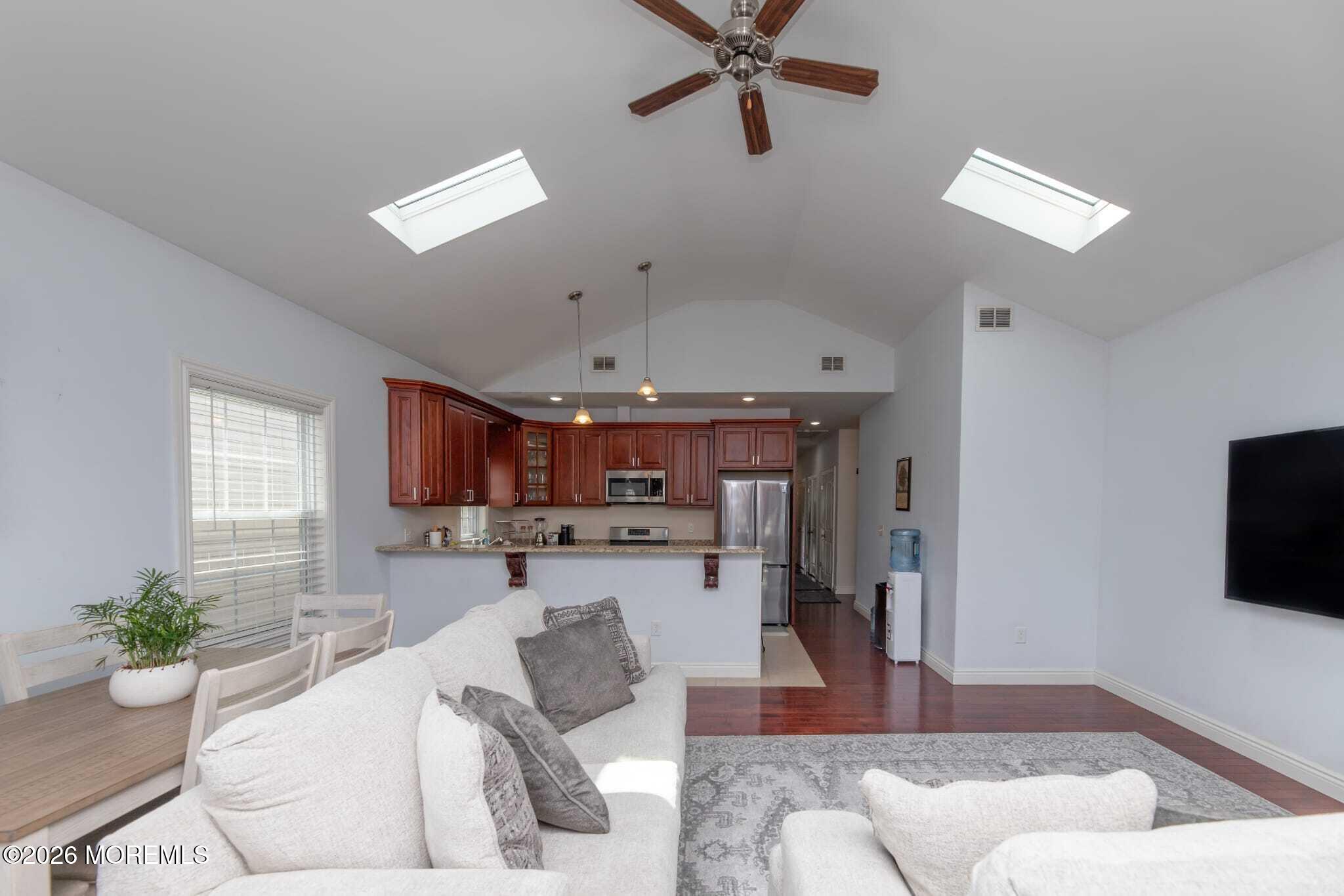 Built in 2018, this well-maintained upper-level condo offers modern living in a prime Jersey City location with convenient access to New York City. The home features Brazilian cherry hardwood flooring throughout and a bright, open living area highlighted by cathedral ceilings.The kitchen is equipped with granite countertops, a spacious breakfast bar, and stainless steel appliances, providing both style and functionality for everyday living and entertaining. Ample closet space throughout the unit offers excellent storage.Ideally located near public transportation, including nearby train stations and bus routes within walking distance, providing convenient access to NYC. Approximately 30 minutes by car to Manhattan. Close to shopping, dining, and local amenities.