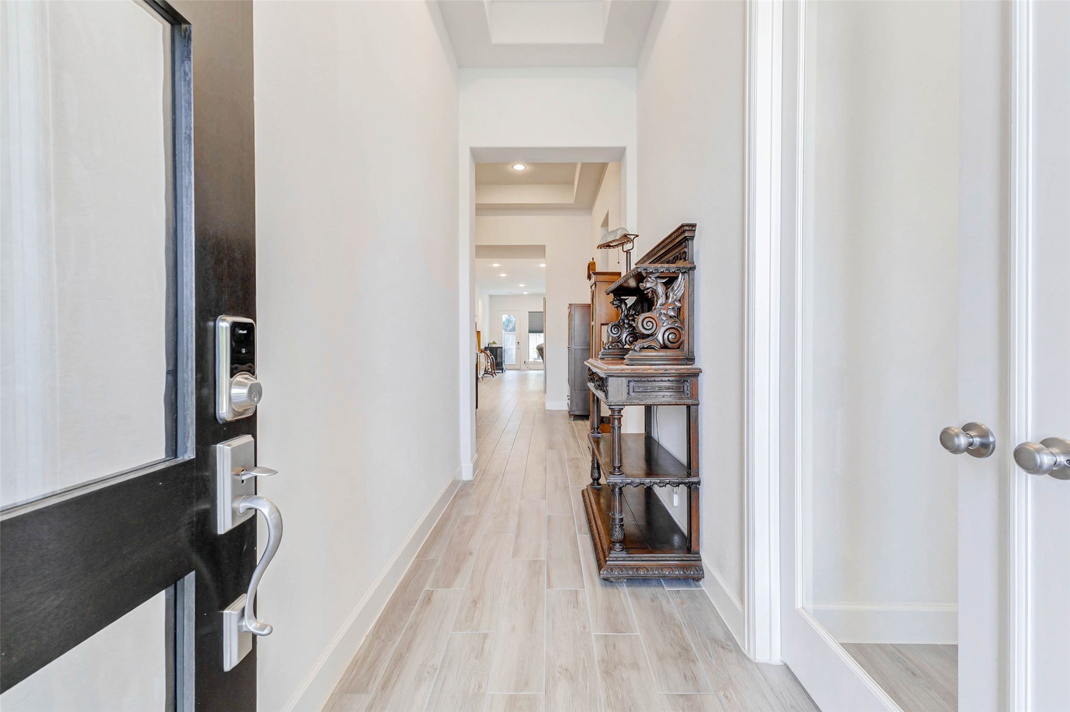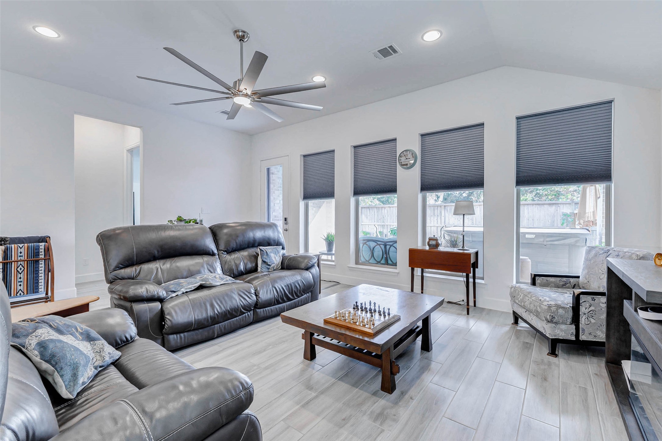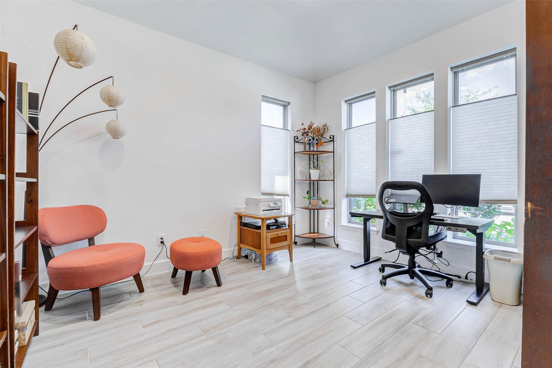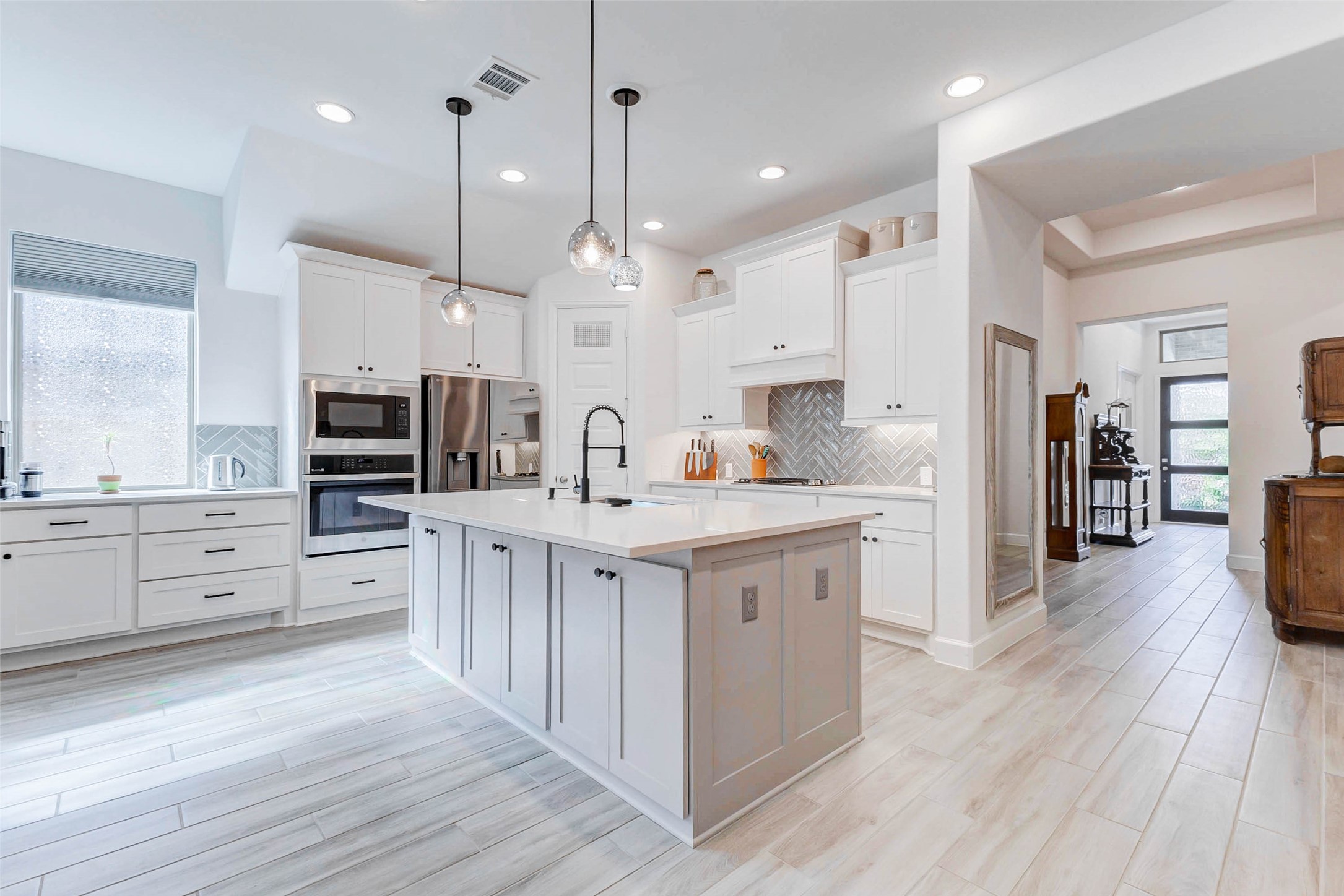 Stunning one-story brick home offering 4 bedrooms, 3.5 baths, and a 3-car garage with upgrades completed—no builder delays or added costs. Entry welcomes you with soaring ceilings and wood-look tile flooring throughout the main living areas. A private home office with glass French doors sits near the front. The heart of the home features a gorgeous kitchen with quartz countertops, abundant cabinetry, walk-in pantry, gas cooktop, breakfast bar, and under-cabinet lighting. Open-concept layout flows into the dining and living areas, highlighted by expansive windows with custom blinds and natural light. One secondary bedroom offers a private ensuite bath, while two additional bedrooms share a full bath. The primary suite features four large windows and a spa-like ensuite with dual vanities, soaking tub, and two walk-in closets. Enjoy a covered patio with ceiling fan and fully fenced backyard with no back neighbors. Security system included. Located in desirable Cross Creek West community.