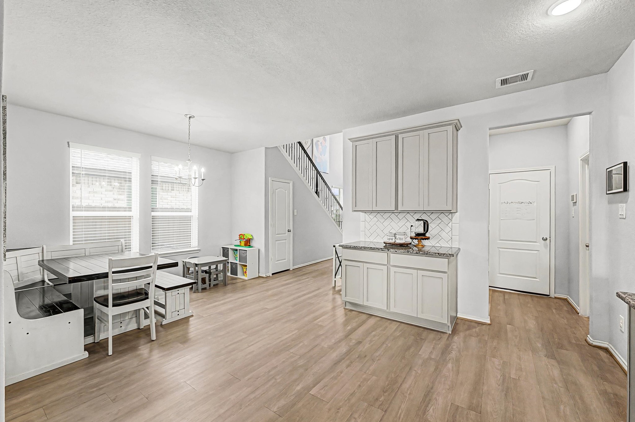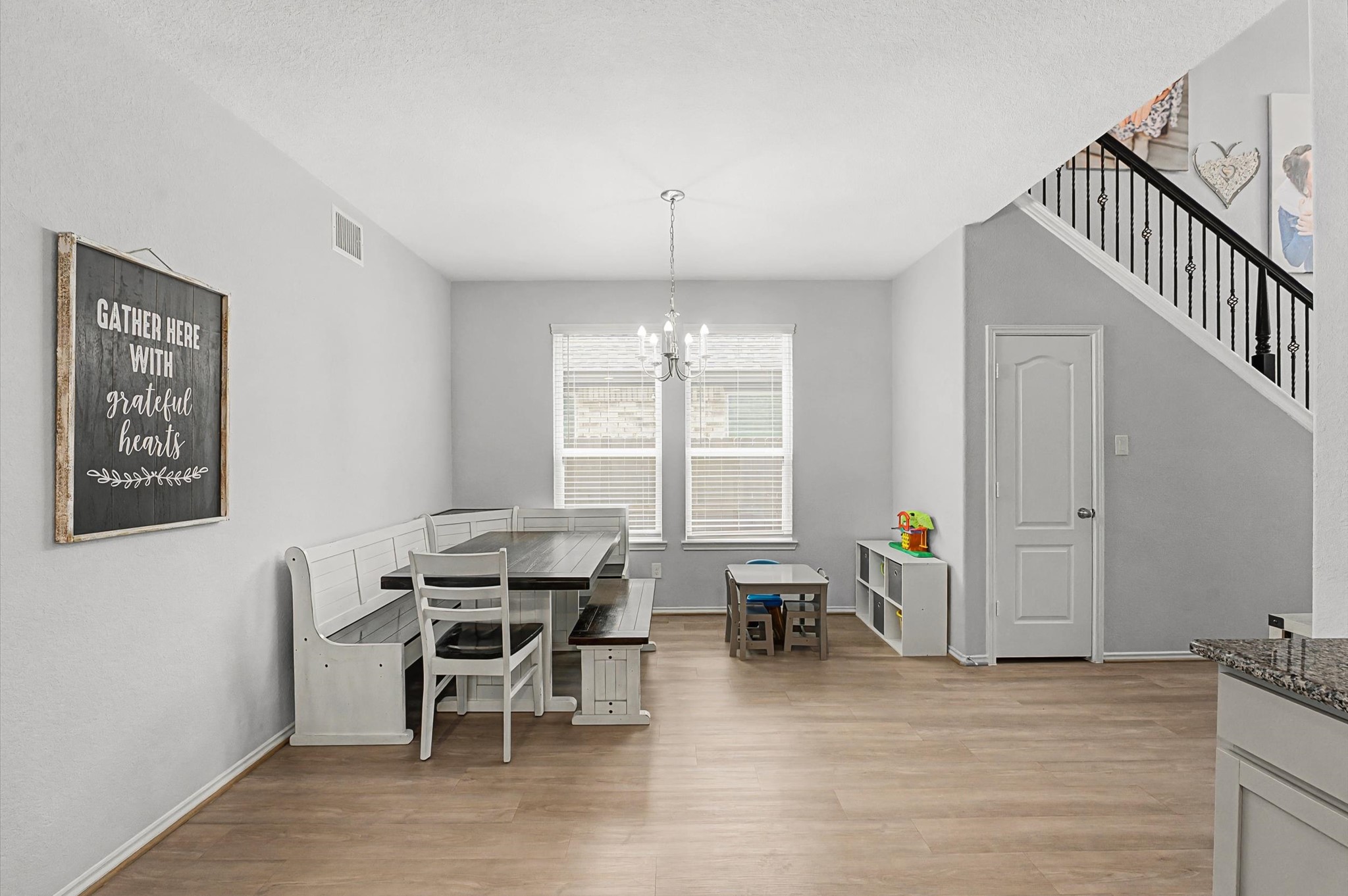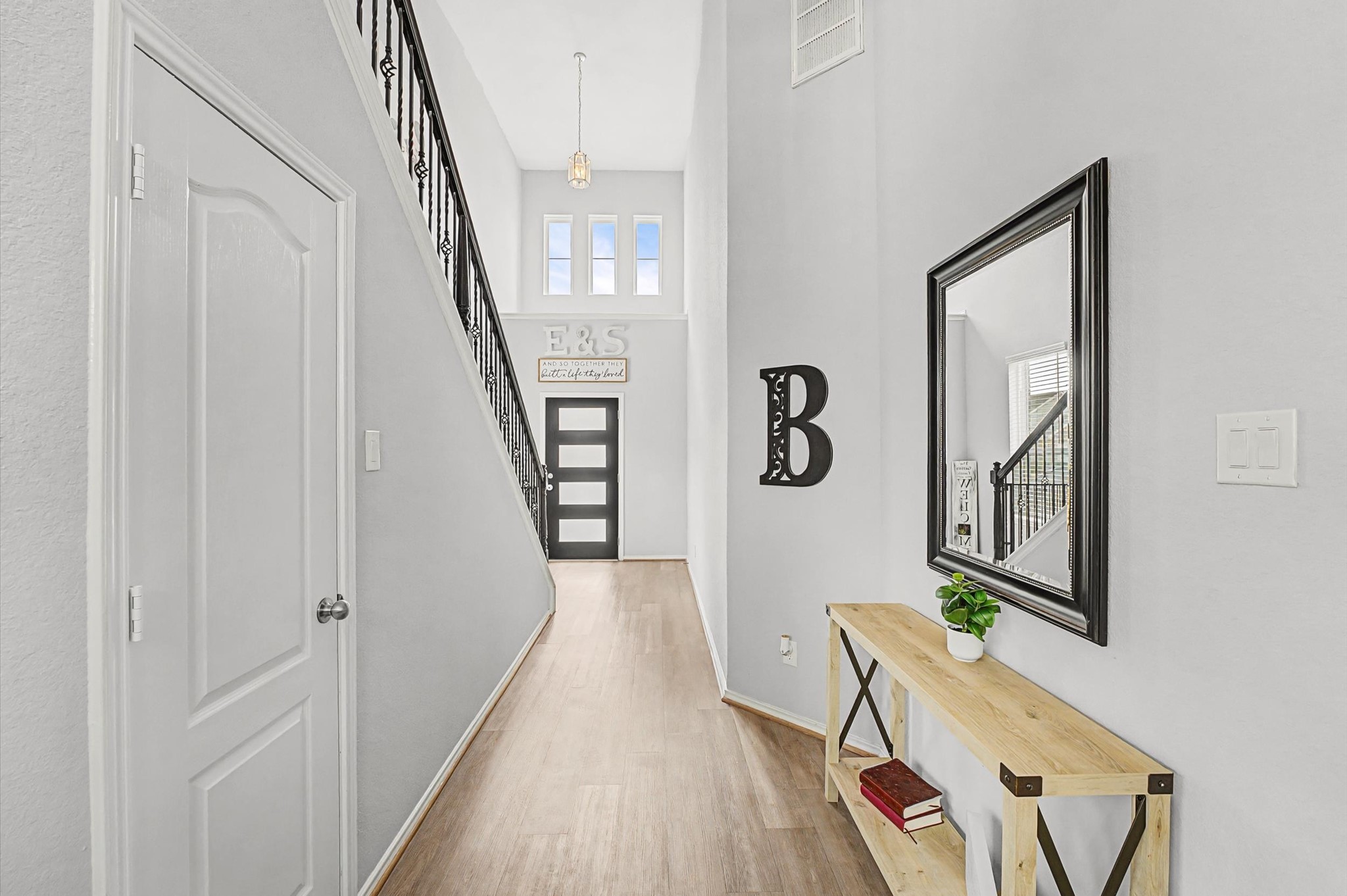 Stunning two-story home in the highly sought-after Marvida master-planned community! This 4-bedroom, 2.5-bath Energy Star® qualified home features an open-concept layout ideal for everyday living and entertaining. The kitchen offers granite countertops, 42-inch upper cabinets, soft-close cabinets, and a spacious island that opens to the family room with a cozy gas log fireplace. Luxury vinyl plank flooring adds style and durability.The primary suite downstairs includes double sinks, a separate shower, and a relaxing garden tub. Upstairs features a game room and dedicated media room—perfect for movie nights. An elegant wrought iron staircase makes a striking first impression. Enjoy resort-style amenities including a beautiful community center, pool, fitness center, parks, and easy access to TX-99, shopping, dining, and entertainment.