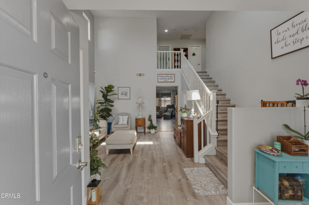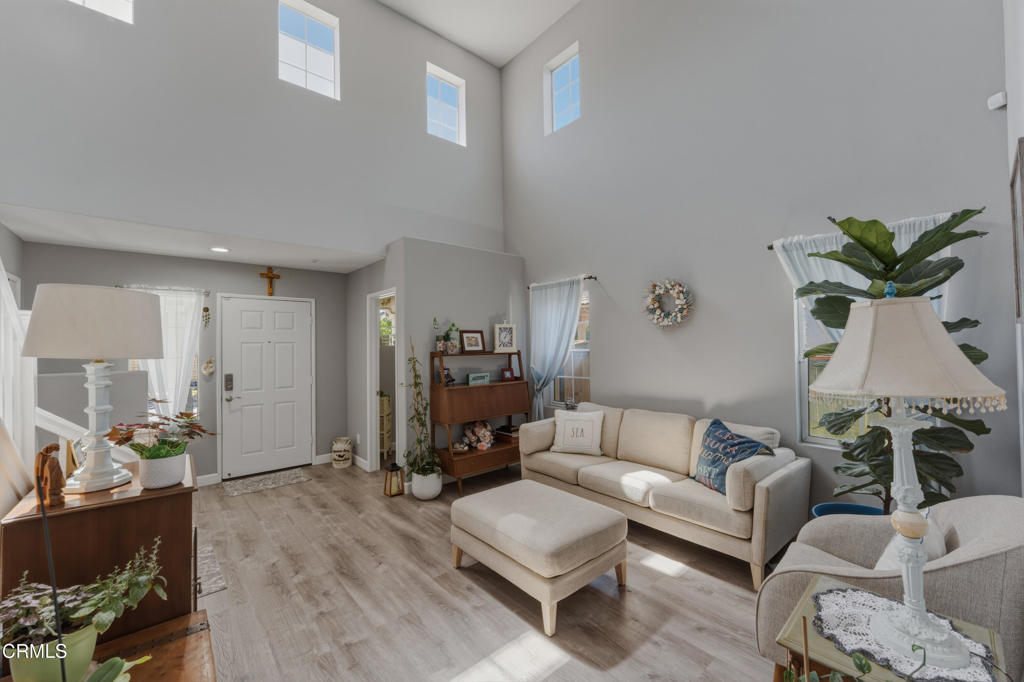 Welcome to this beautifully maintained two-story home showcasing timeless Spanish-inspired architecture with smooth stucco exterior, a classic clay tile roof, and charming wrought-iron balcony accents. Step inside to bright and inviting living room with soaring vaulted ceilings and abundant natural light streaming through upper clerestory windows, creating an open and airy feel. Neutral tones and wide-plank flooring provide a warm, modern backdrop that extends into family room dining and kitchen area. ***Comfortable and inviting family room designed for everyday living and relaxation. A cozy fireplace serves as the focal point, perfect for gathering on cooler evenings, while the open layout provides connection to dining and kitchen for easy entertainment. ** Kitchen features custom composite countertops, a spacious center island with seating, and a large farmhouse-style double basin sink positioned beneath a window overlooking the backyard. Crisp white cabinetry is complemented by stainless steel appliances, including a gas range, built-in microwave, dishwasher, and refrigerator. Recessed lighting and abundant natural light enhance the space, while the open-concept layout seamlessly connects the kitchen to private and low-maintenance backyard designed for both relaxation and entertaining.*** Featuring lush artificial turf for year-round greenery, this outdoor space offers ample room for lounging, play, or hosting gatherings. Raised planter beds with mature fruit trees add dimension and greenery along the perimeter. ** 3 bedrooms well sized bedrooms upstairs ** Primary suite offering comfort, functionality, and room to unwind. The oversized bedroom features abundant natural light, wide-plank flooring, and ample space for a sitting area or home office setup. A charming window seat with built-in cabinetry provides additional storage and a cozy place to relax. The en-suite bathroom is well-appointed with dual vanities, generous counter space, and abundant cabinetry for storage. A large walk-in shower with glass enclosure adds a clean, updated feel, while the thoughtful layout creates a private retreat separate from the rest of the home** This home offers the perfect blend of comfort, functionality, and low-maintenance living--ready for its next owner to move in and enjoy.