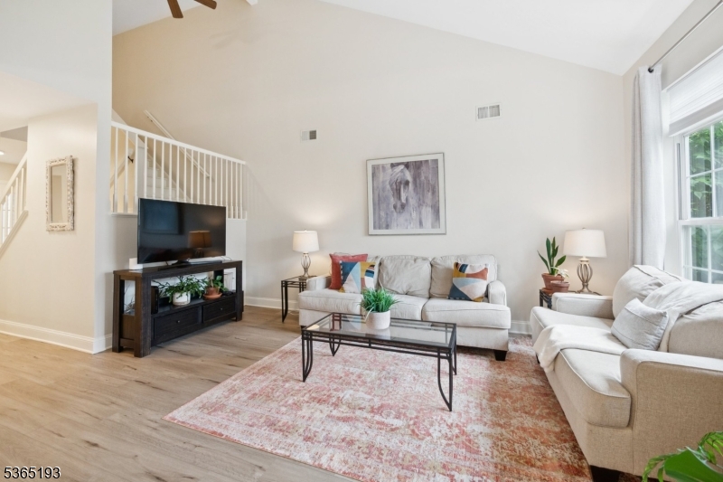 Welcome to this stunning, 2-bedroom, 2.5 bath move in ready townhome nestled in a serene cul-de-sac, close to grocery & shopping and within short distance to Morristown Train to NYC. This home is perfect for both relaxation and entertaining with an inviting open floor plan, gorgeous faux wood floors throughout & vaulted ceilings. The kitchen features a separate breakfast area, stainless steel appliances, and ample cabinet space. The light filled living room has a wood burning fireplace and opens to the dining room with sliders to the outside patio area. An attached garage, enclosed laundry area and powder room completes the first floor. The Primary Suite offers a peaceful retreat with vaulted ceilings & a newly renovated en-suite bathroom with walk in shower, a separate makeup area and a large walk-in closet. The additional bedroom provides a space for guests or home office. There is a bonus usable loft area & full bathroom with bathtub also on this level. The enormous basement has tall ceilings and lends itself to use as a at home gym or play area with plenty of space for storage. This home brings the outdoors in with access to the quiet patio is perfect for that morning cup of coffee or entertaining. With convenient access to local amenities and a vibrant community, this townhome offers both comfort and style for modern living. Roof and gutters replaced 2025.