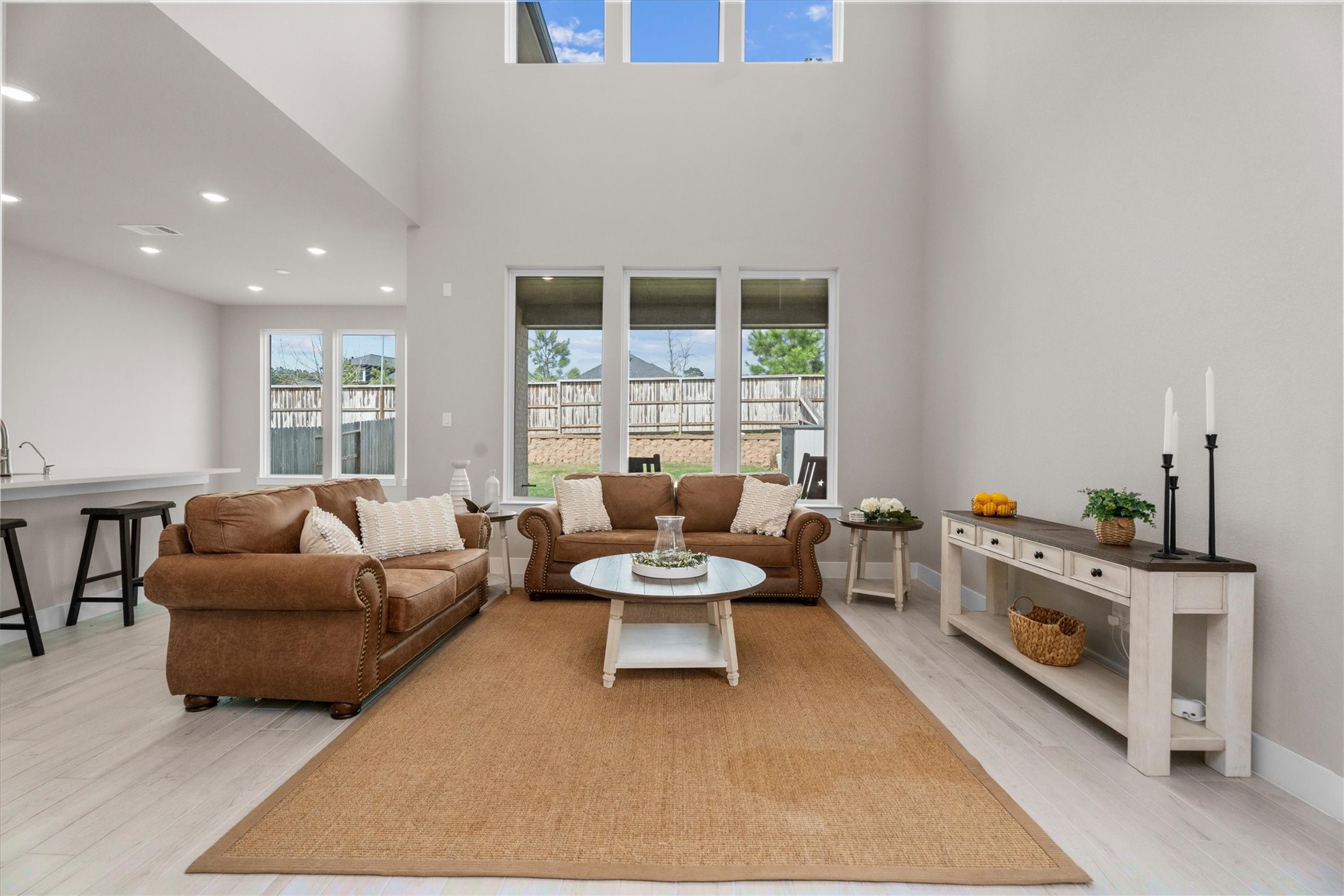 Stunning 4 bed, 3 bath brick home w/spacious and inviting layout. Entering, you are welcomed by beautiful light wood look vinyl flooring that flows throughout all the main living areas. 2nd bedroom with its own ensuite bath is conveniently located on the 1st floor. The living room features soaring ceilings that open to the second floor and 2 story windows that fill the space w/natural light. Kitchen overlooks the living area and has granite countertops, a breakfast bar, stainless steel appliances, a stylish herringbone backsplash, walk in pantry, and a bright breakfast area. Upstairs you will find a large game room, along with 2 additional bedrooms that share a full bath with double sinks. Washer and dryer are also conveniently located on the 2nd floor. Spacious primary suite features an ensuite bath with granite counters, double sinks, soaking tub, and a large walk in closet. Out back has a covered patio and fully fenced backyard with no back neighbors.HOA offers an array of amenities