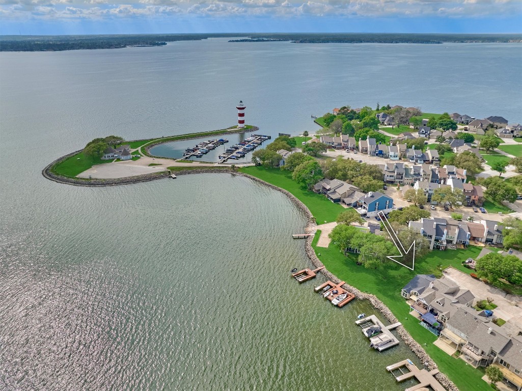 Welcome home to Harbour Town Club!-Waterfront end unit with boat slip and back patio facing south! Spectacular open water views & protected cove! Three Bedrooms-1-bedroom w/bath upstairs could be used as a primary suite. Primary Down with a secondary bedroom. Downstairs bath w/large shower, vanity and double sinks. Stunning major remodel some of the upgrades in 2023-new roof, stainless steel appliances, granite countertops kitchen & bath, 100% LVP flooring, lighting and hardware. 2011- new windows and siding. Harbor Town is an unique gated community with many amenities including a club house with open water views, marina(private slips are available for rent), tennis courts, pickle ball, lake access, 2 private beaches, swimming pool, lawn maintenance, pest control, onsite maintenance and property manager.