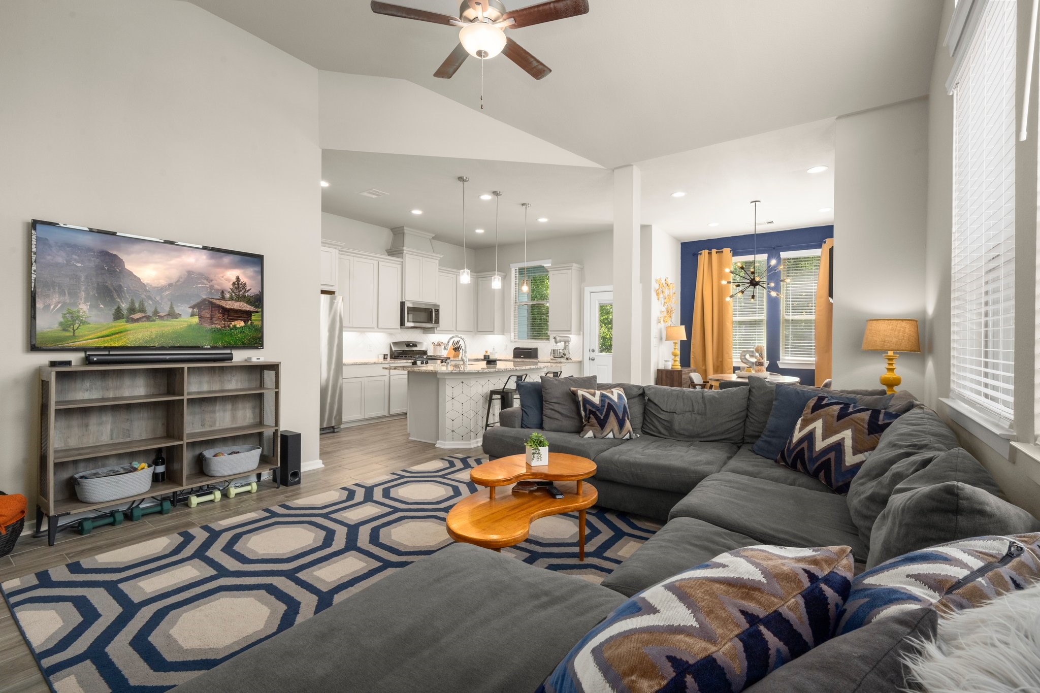 Resort style living! Woodforest Golf Club - a 27 championship golf course, walking trails, tennis/basketball, Rec center, & parks/playgrounds. Only minutes from The Woodlands, Lake Conroe, w/ lots of nearby shopping & dining. Fantastic split level, 3 Bedroom, 2.5 Baths, 2 car garage duplex villa in a private, wooded area of Woodforest. Open concept living spaces with soaring ceilings and abundant natural light make this home live much larger than its actual size! The main living spaces and primary bedroom are conveniently on one level, while two secondary bedrooms and spacious gameroom are on their own dedicated floor Fantastic decorative touches give this home a model home feel with designer accent walls and updated lighting fixtures. Enjoy the peaceful, lush views from your balcony with no back neighbors! Don't miss an opportunity to call this one "home" and live the dream every day!