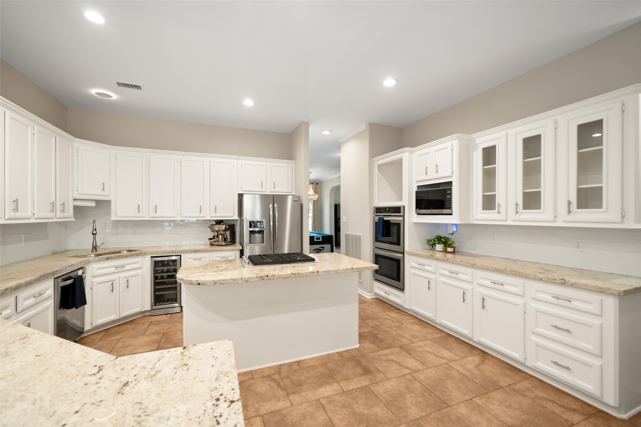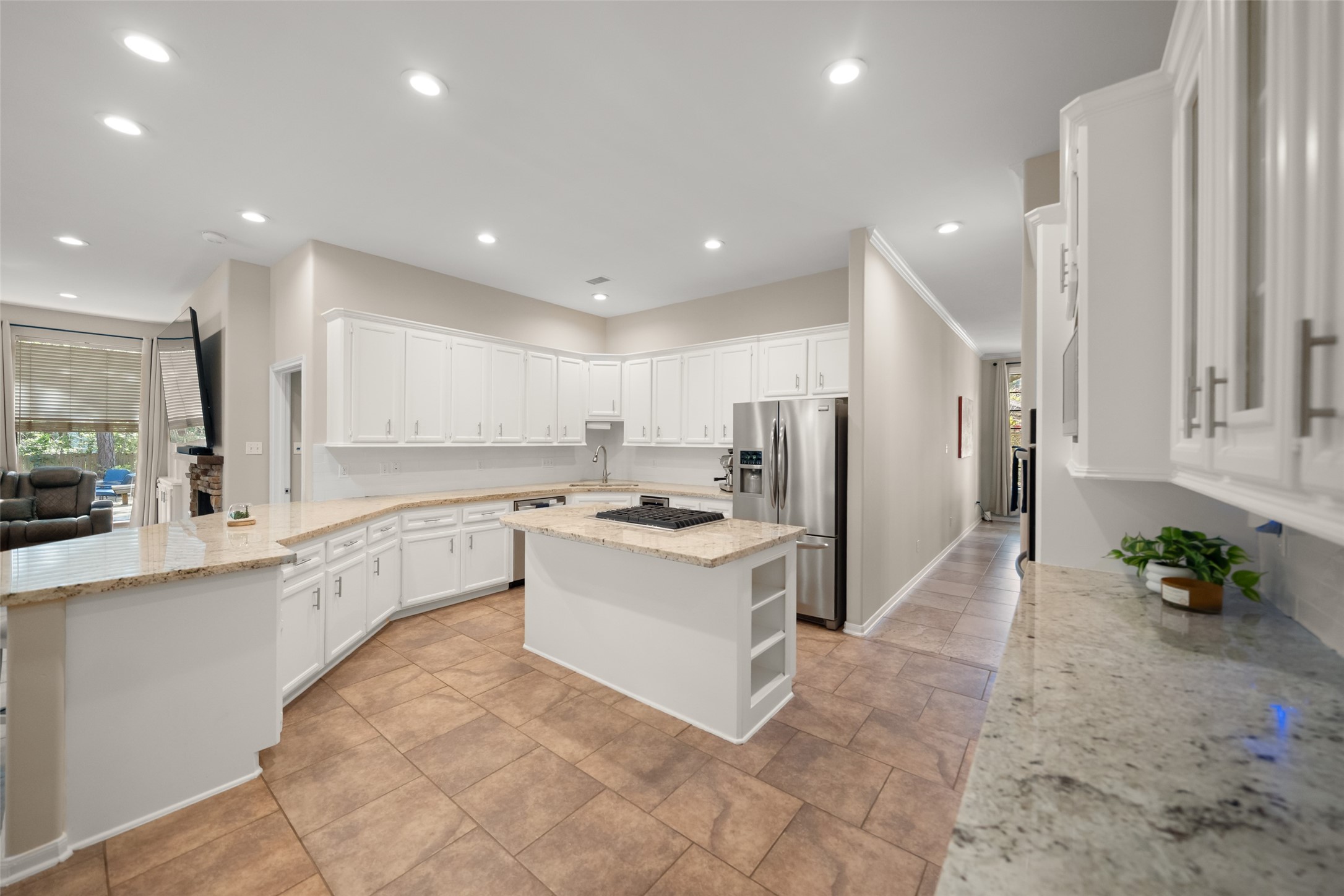A rare opportunity to own a beautifully designed home on a .6-acre corner lot in the sought-after Carriage Hills community. This expansive one-story offers a functional layout with 10-foot ceilings, large rooms, and abundant storage throughout. The chef’s kitchen features granite countertops, double ovens, beverage fridge, and extensive cabinetry, flowing into the breakfast area and living room with a gas fireplace and wall of windows overlooking a tree-filled backyard. The primary retreat includes sitting area and fireplace, while secondary bedrooms offer flexibility for guests or a home office. An oversized bonus room above the garage adds versatility for media, gaming, or additional living space. Complete with a 3-car garage, whole-home water filtration system, 10GbE network, and a shaded backyard with a large deck. Zoned to Top Woodlands Schools, the neighborhood features tennis courts, gated park with a pool, greenway access, fishing pond, and a short walk to a river beach.