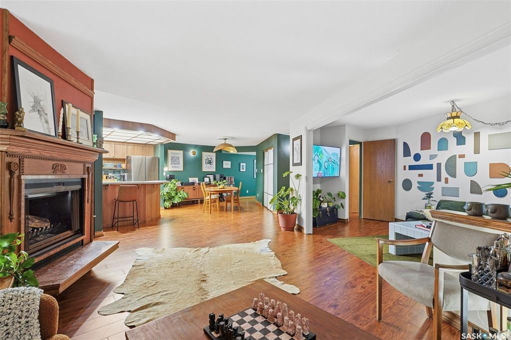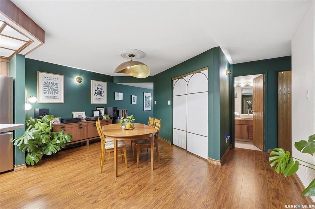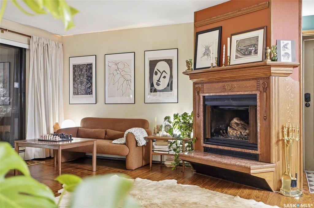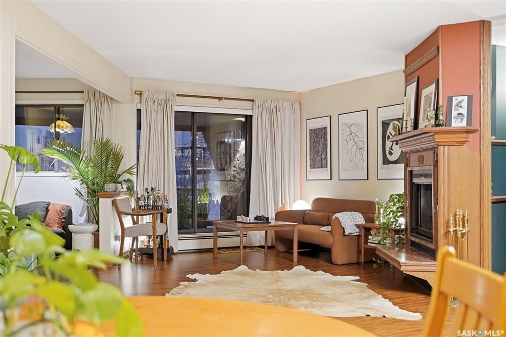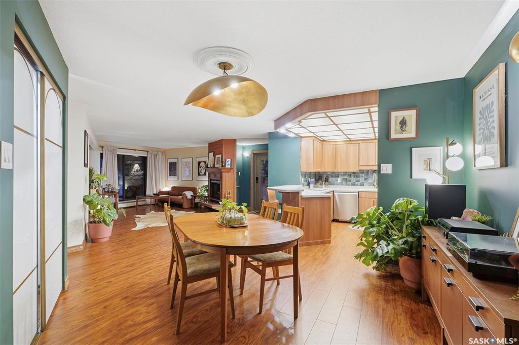 Welcome to life on prestigious Saskatchewan Crescentone of the citys most sought-after addresses. This spacious 1,184 sq. ft. condo offers an ideal blend of comfort, style, and location, directly across the street from Rotary Park with beautiful green space and river views just steps from your door.This beautifully updated 1-bedroom plus den suite has been extensively renovated, offering a fresh, modern feel throughout. Enjoy brand new flooring, a fully updated kitchen complete with new appliances, refreshed bathroom, new washer and dryer, updated fixtures, and fresh painttruly move-in ready with nothing left to do.The thoughtfully designed layout features a bright and open living area, perfect for both relaxing and entertaining. The versatile den makes an ideal home office, guest room, or creative space. Large windows fill the home with natural light while highlighting the serene surroundings.The stylish kitchen flows seamlessly into the dining and living spaces, while the spacious primary bedroom provides a comfortable retreat. Every detail has been carefully updated to enhance both function and aesthetic.Enjoy the ease of condo living with heat and water included in your condo fees, along with access to a fantastic amenities roomperfect for hosting gatherings or socializing with neighbors.Located just steps from Rotary Park, scenic walking paths, and minutes from downtown, this home offers the perfect balance of urban convenience and natural beauty.Dont miss this rare opportunity to own a fully renovated home in a premier locationbook your private showing today!
