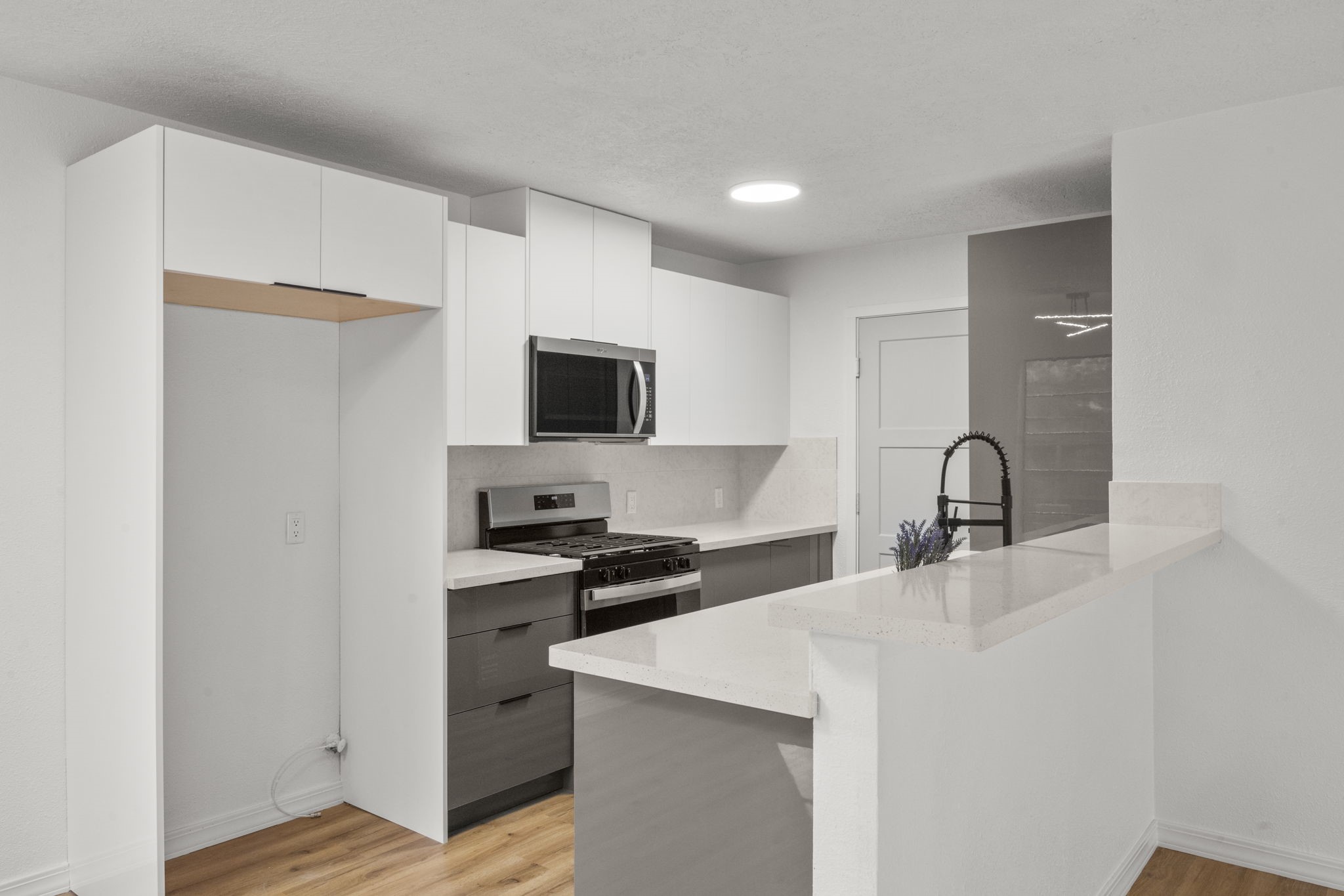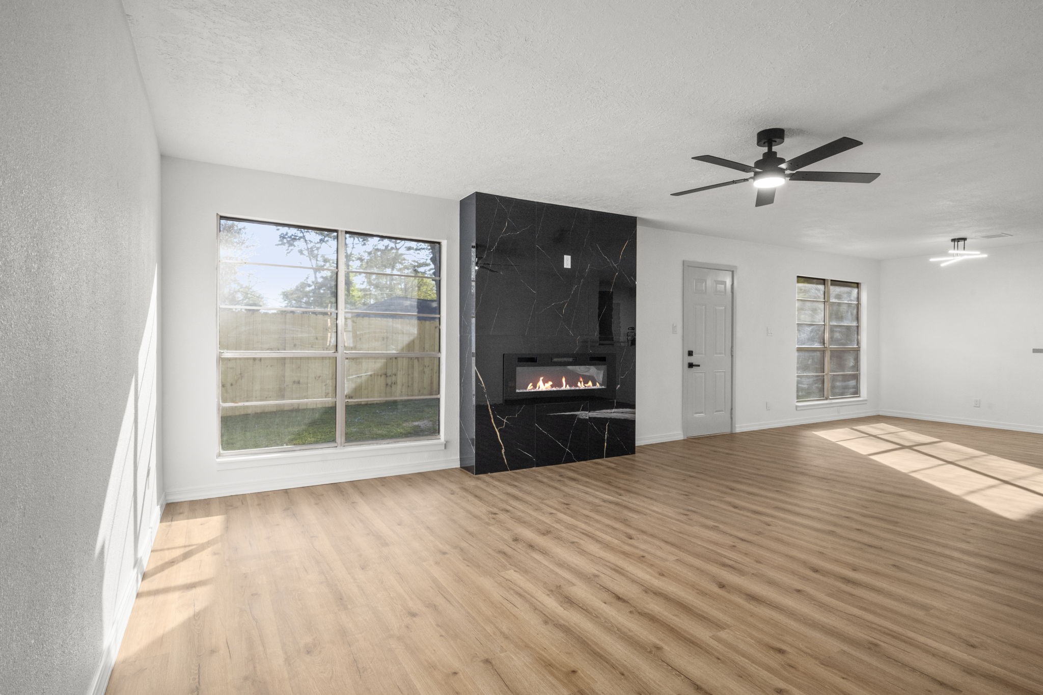 A modern GEM has been tastefully remodeled. You will appreciate the recent upgrades throughout! As you pull up to the home you will fall in love with the aesthetics such as white brick, black trim and a courtyard at the entryway. Appreciate a freshly poured driveway and roof (26). As you enter into the home, you will find recent LVP oak style flooring, a modern fireplace, a contemporary kitchen featuring quartz countertops, current backsplash, modern cabinetry and new stainless steel appliances (26). The kitchen is open to the living room and dining area making it convenient for entertaining. The primary bedroom offers a recently remodeled ensuite bath with a double sink vanity and shower. Don't miss the custom built closets throughout the home! Two additional bedrooms are down the hall with an additional remodeled full bath and a tub/shower combo. Step outside onto your covered patio and enjoy a nice size, fully fenced, yard. Blink and you will miss the opportunity to see this home!