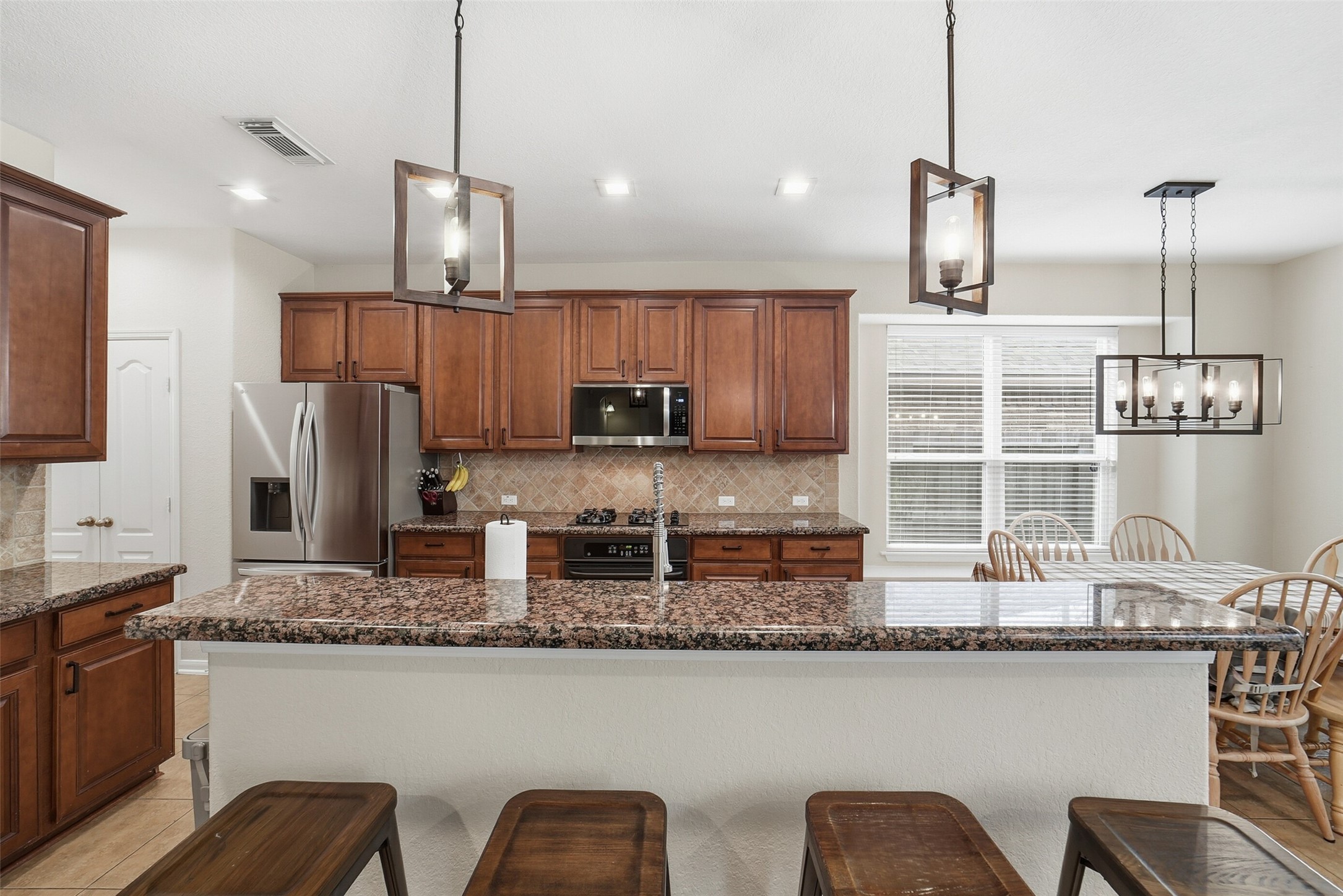 MOTIVATED SELLER with Price improvement! Beautiful 4-bedroom with extra room. Recent updates: new shingles, sprinkler system, upstairs bathroom remodel, microwave, whole-home dehumidifier, recessed patio lighting, updated kitchen faucet, dishwasher, A/C unit, ceiling fans, repainted front and back doors, and many other special features. Come play in this Ginormous upstairs gameroom. 1st floor Primary bed with en-suite bathroom. Large utility room conveniently located off garage and spacious utility closet. An inviting dining room with lots of light, space for seating many. Living room w/gas log fireplace, view of the backyard with plenty of room for a sectional and space to relax. Vinyl plank flooring complements most decor style. Spacious kitchen opens to the living area for easy entertaining and family conversation. This one is move-in ready with GREAT updates - grab it before it is gone! All dimensions are estimates and should be confirmed by buyer.