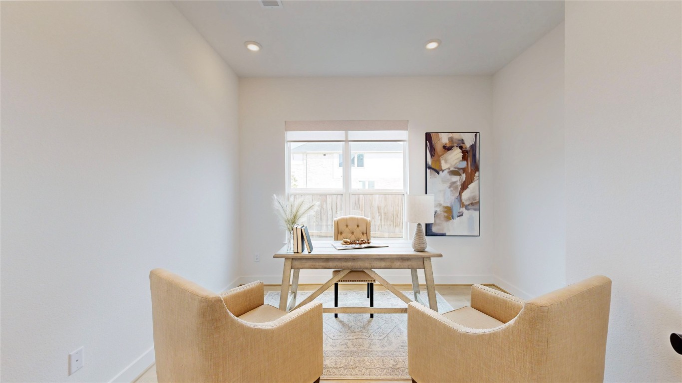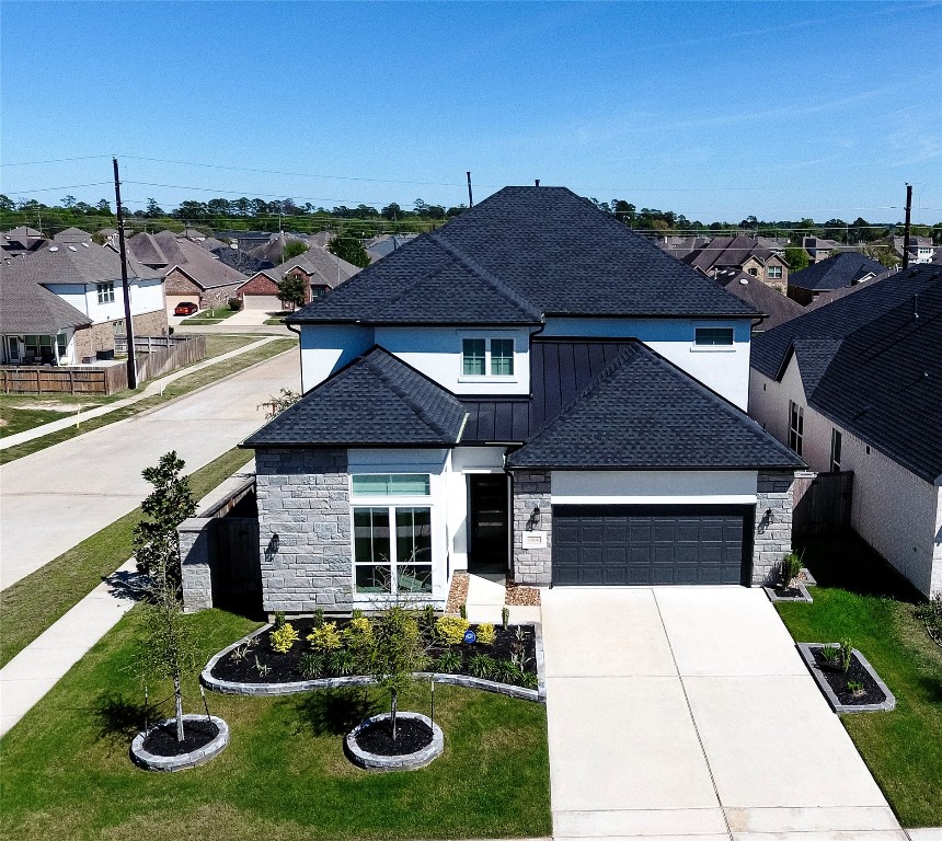 Stunning Toll Brothers Bautista floor plan in sought-after Lakes at Creekside! This 4-bedroom, 3 full bath home with a guest powder bath features thoughtful custom enhancements throughout. Flexible layout includes a private office, spacious game room or second living area, and a dedicated media room. Chef-inspired kitchen showcases leathered quartz countertops with chiseled edges, stylish grey cabinetry, and an open-concept design flowing into the living space. The living room is anchored by a striking floor-to-ceiling slate fireplace. Generously sized bedrooms all offer walk-in closets. Enjoy the extended covered patio, perfect for relaxing or entertaining. Community amenities include scenic trails, ponds, playgrounds, and resort-style pools, all near dining, shopping, and everyday conveniences. To fully appreciate this home, please check out the Virtual Tour to see more of this incredible home.