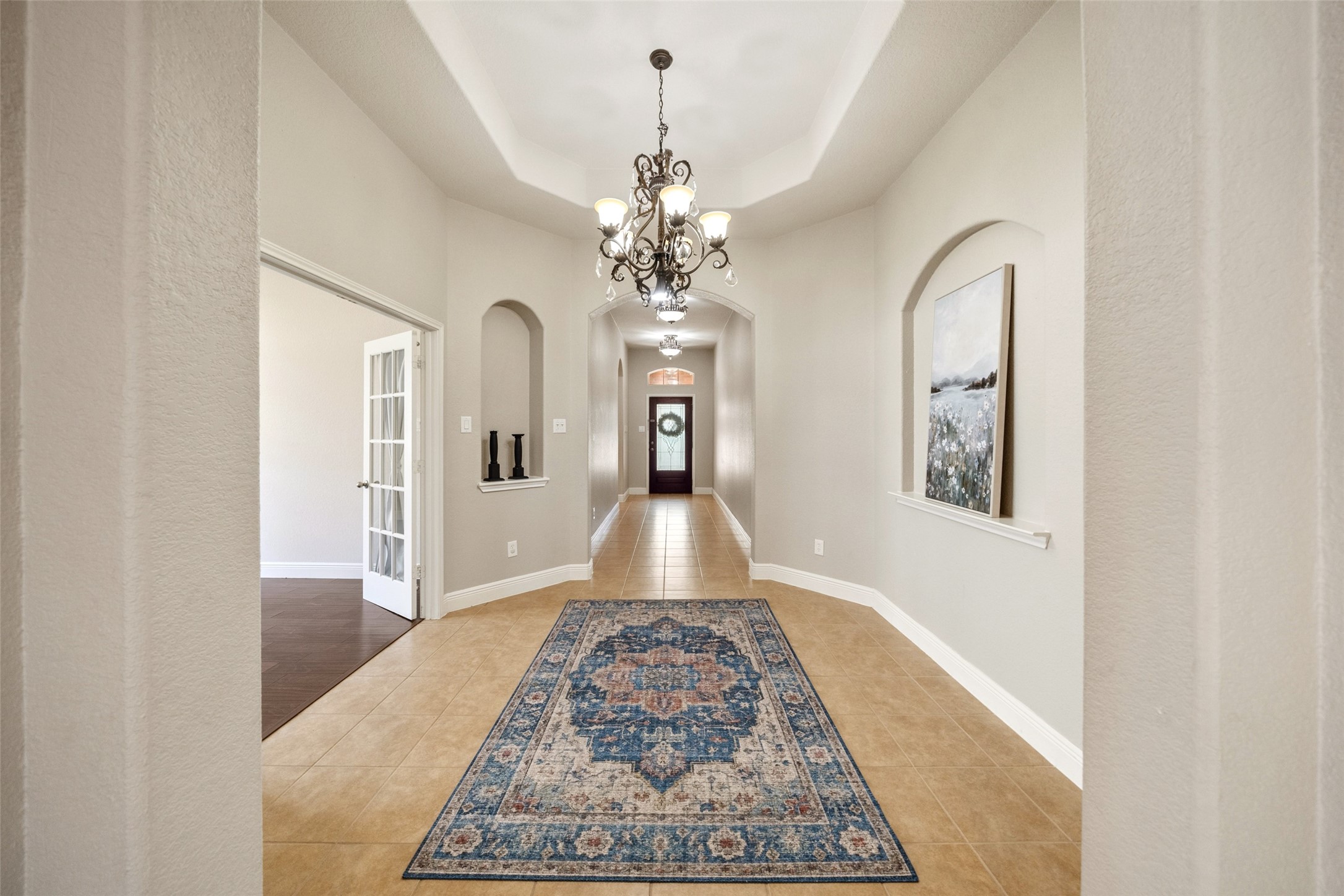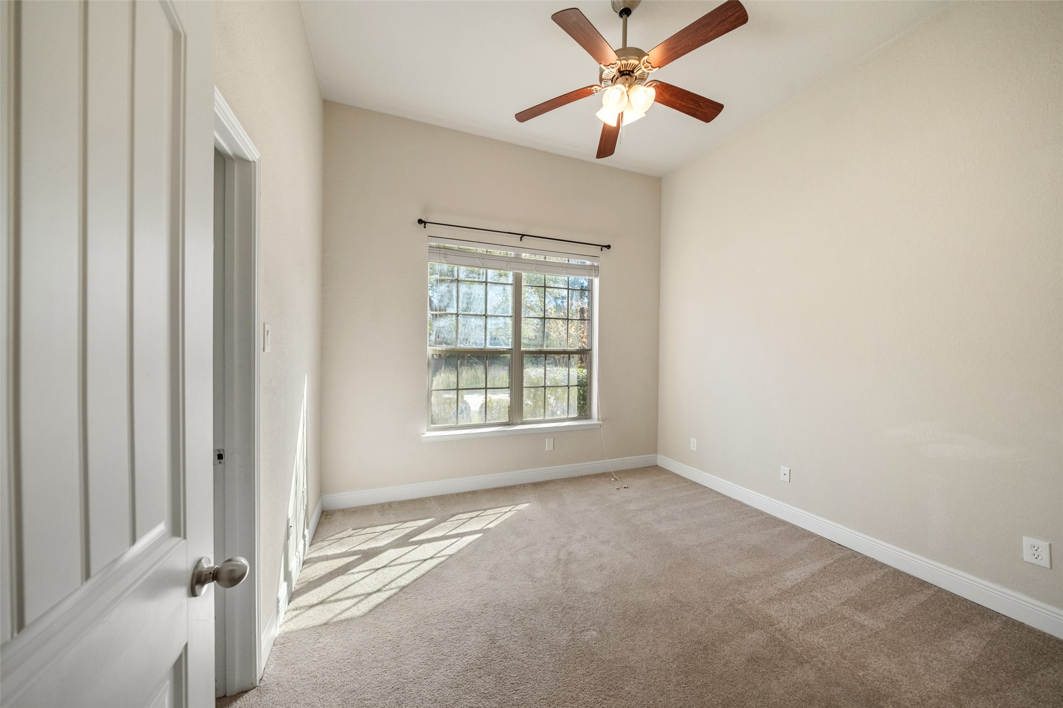 WELCOME to this beautiful 4-bedroom, 3-bath home in the highly desirable Woodlands Creekside Timarron subdivision. Thoughtfully designed, this 1 story features a brick veneer exterior, soaring ceilings, tile and carpet flooring, a private study with French doors, formal dining, and an open-concept family room perfect for everyday living and entertaining. Step outside to a serene backyard with covered patio and plenty of space to create the pool of your dreams. The kitchen is a chef's delight, complete with granite countertops, tile backsplash, ample cabinet space, a walk-in pantry, breakfast bar, and refrigerator is included. Unwind in the spa-like primary suite offering a large walk-in closet, dual sinks, soaking tub and separate shower. Enjoy fantastic community amenities including a playground, splash pad, tennis courts, basketball courts, and walking trails.