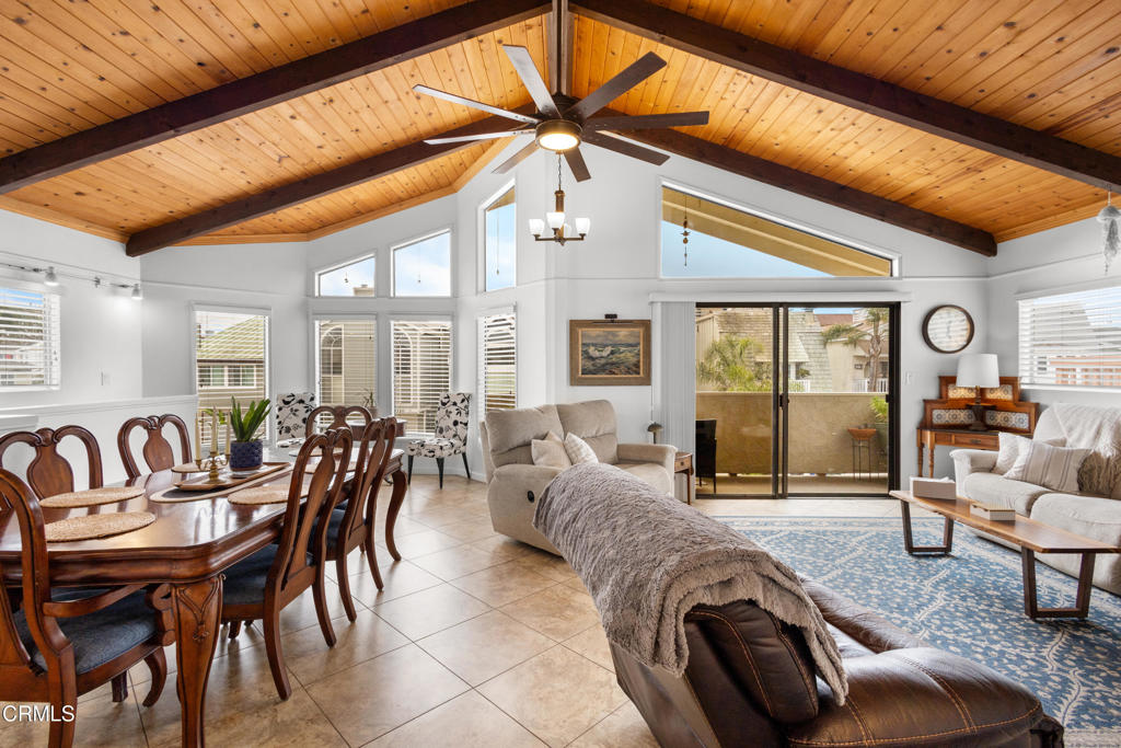 Welcome to paradise at Hollywood By The Sea, located on one of the most beautiful stretches of beach in Ventura County. This classic beach home located 1/2 block to the sand offers both comfort and versatility. The downstairs level features a private guest retreat with two bedrooms, an updated bathroom with a seamless glass shower and a welcoming living area complete with a convenient kitchenette. It has a lock out potential to accommodate dual living quarters, with its own garage space and a sliding door that leads to a charming outdoor space with Spanish tile pavers--perfect for barbecuing, relaxing, and storing beach gear.Upstairs, a beautifully tiled staircase leads to a stunning living room with vaulted wood beam ceilings, a designer tile surrounds fireplace, and ceiling fan. The open-concept living and dining area flows seamlessly to a spacious balcony through sliding glass doors, inviting in refreshing ocean breezes. The kitchen opens to the living space and features bar seating, recessed lighting, and a sleek LG appliance package.The upstairs bathroom is generously sized with dual sinks, a large mirror, and designer lighting. Two oversized bedrooms--each comparable to a primary suite--offer incredible space and private access to a third balcony.Tile flooring runs throughout the home, offering durability and easy maintenance for beach living. Multiple closets provide ample storage throughout.Additional features include an interior laundry and utility room ideal for sandy towels, an attached two-car garage with extra space for bikes and water toys, and an oversized driveway with rare guest parking.Enjoy island views and the sparkling Pacific Ocean just steps away, with breathtaking sunsets you will treasure for a lifetime. Perfectly positioned just above Channel Islands Harbor--the gateway to Channel Islands National Park--and ideally situated halfway between Malibu and Santa Barbara, this coastal retreat offers the ultimate beach lifestyle. Your days will be filled with wave-filled adventures, kayaking, paddleboarding, boating, visits to local yacht clubs, nearby wineries, golf, boutique shopping, and an array of dining experiences.This is the perfect beach getaway--come for a day, stay for a lifetime.