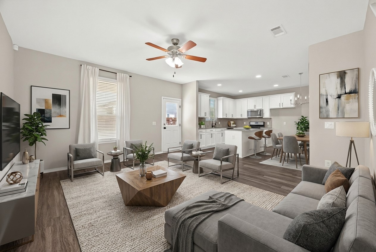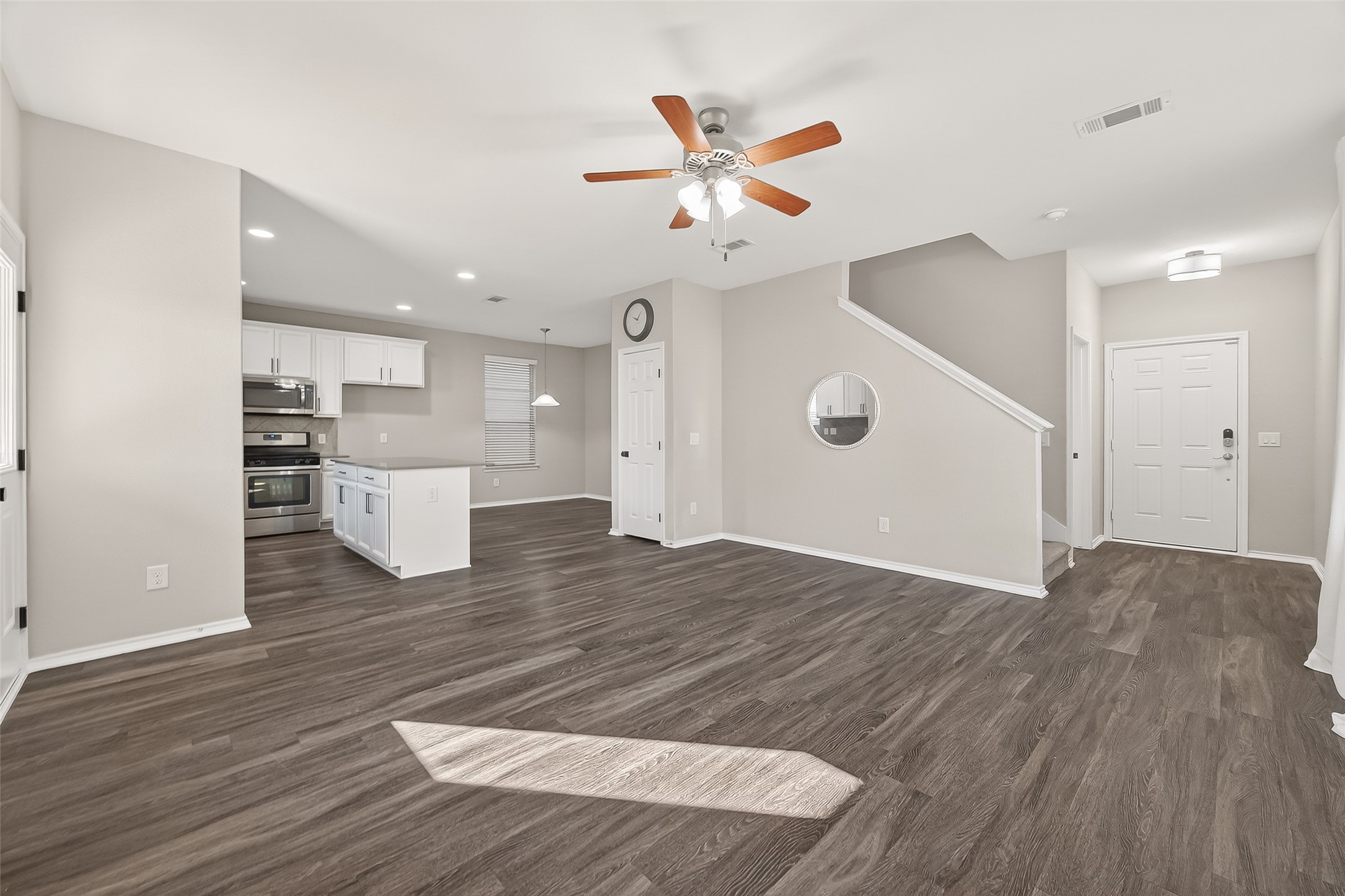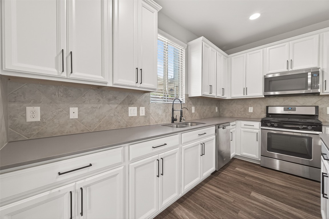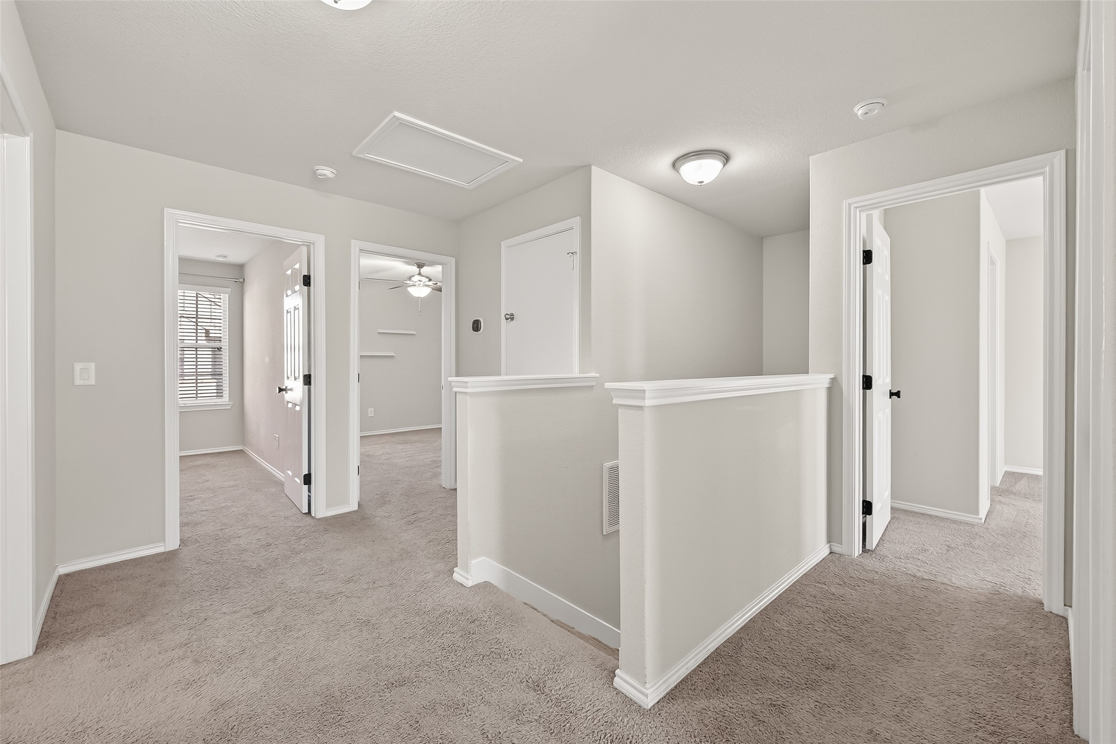 Beautiful corner-lot home in gated community in the heart of Spring Branch, zoned to SBISD. This energy-efficient, Pulte Home features 3B, 2.5B with a thoughtfully designed layout.First floor offers an open-concept living, dining, & kitchen area—ideal for entertaining. Covered patio with nice size yard in the neighborhood. Vinyl plank flooring runs throughout the home, with carpeted bedrooms for added comfort. All bedrooms & the utility room are located on the second floor. The spacious primary suite includes a walk-in closet & ensuite bathroom with a separate walk-in shower & garden tub. Ceiling fans in every bedroom & the flex area for enhanced comfort. Whole-house water filtration system. Washer & dryer convey. Garage with built-in organization & WiFi-enabled garage door opener. HOA maintenance covers gated community access, a maintained park, sprinklers, front yard maintenance, water, trash & recycling.Near parks, restaurants, & major highways. Schedule your private showing