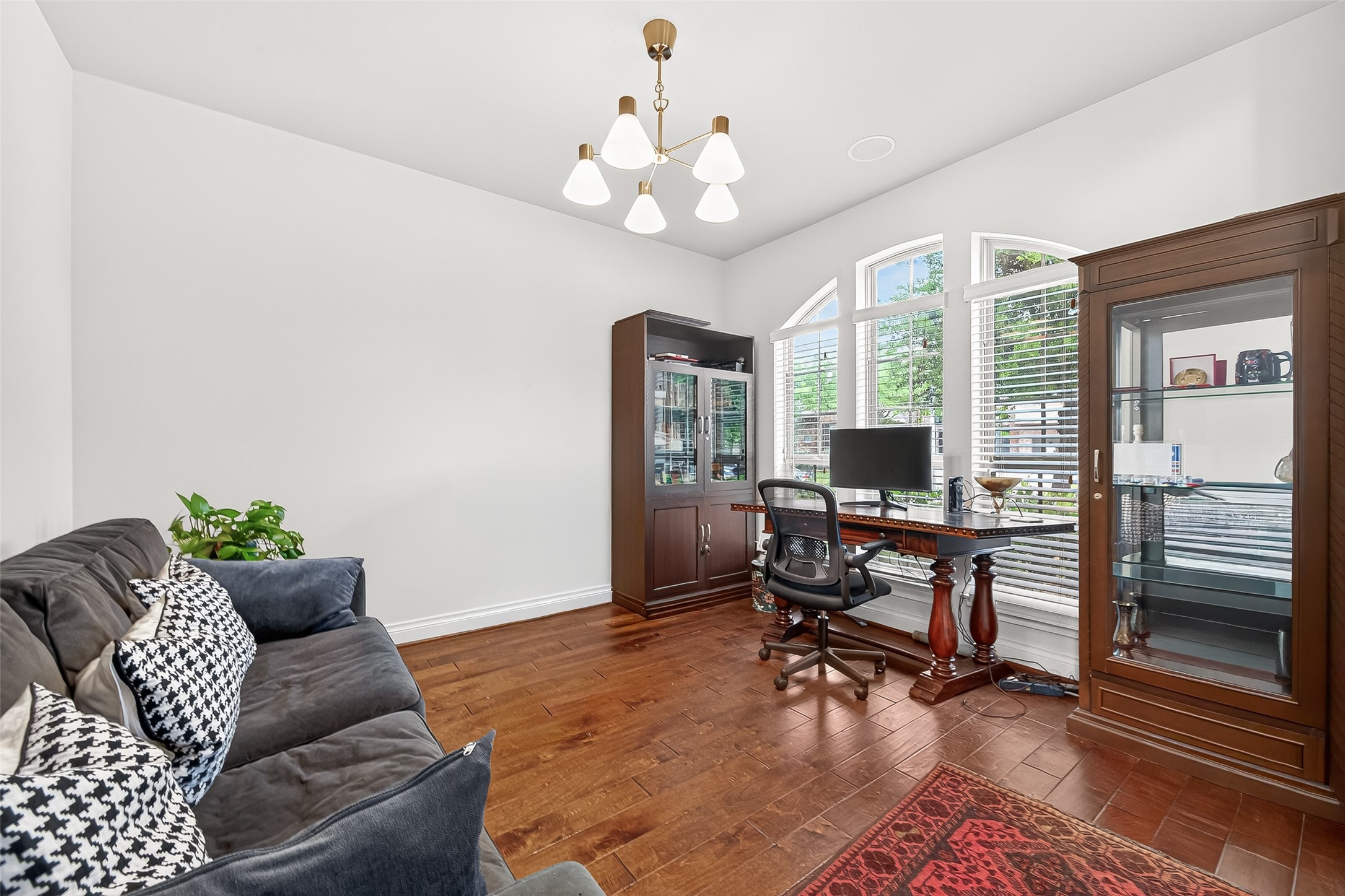 MODEL HOME. Welcome home situated in the desirable Pine Mill Ranch Community! This brick and stone home exudes elegance & functionality. Grand two-story entry that allows natural light to flood the space. The island kitchen features granite counters, gas cooktop, stainless steel appliances & breakfast area open to the spacious family room with soaring ceilings, gas fireplace & wall of windows overlooking the backyard. Downstairs includes a guest suite with full bath, ideal as a mother-in-law suite. The primary suite offers high ceilings, a spa-like bath with dual sinks, jetted tub, large separate walk-in shower, and large walk-in closet. Upstairs boasts 3 large bedrooms, 2 full bathrooms, game room, media room, large closets. Enjoy a beautiful landscaped backyard with covered patio. Walking distance to parks, swimming pool and Elementary School. NEW ROOF from 2024!!