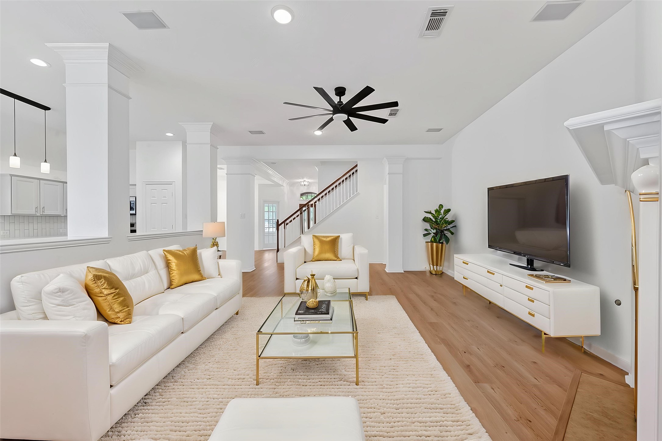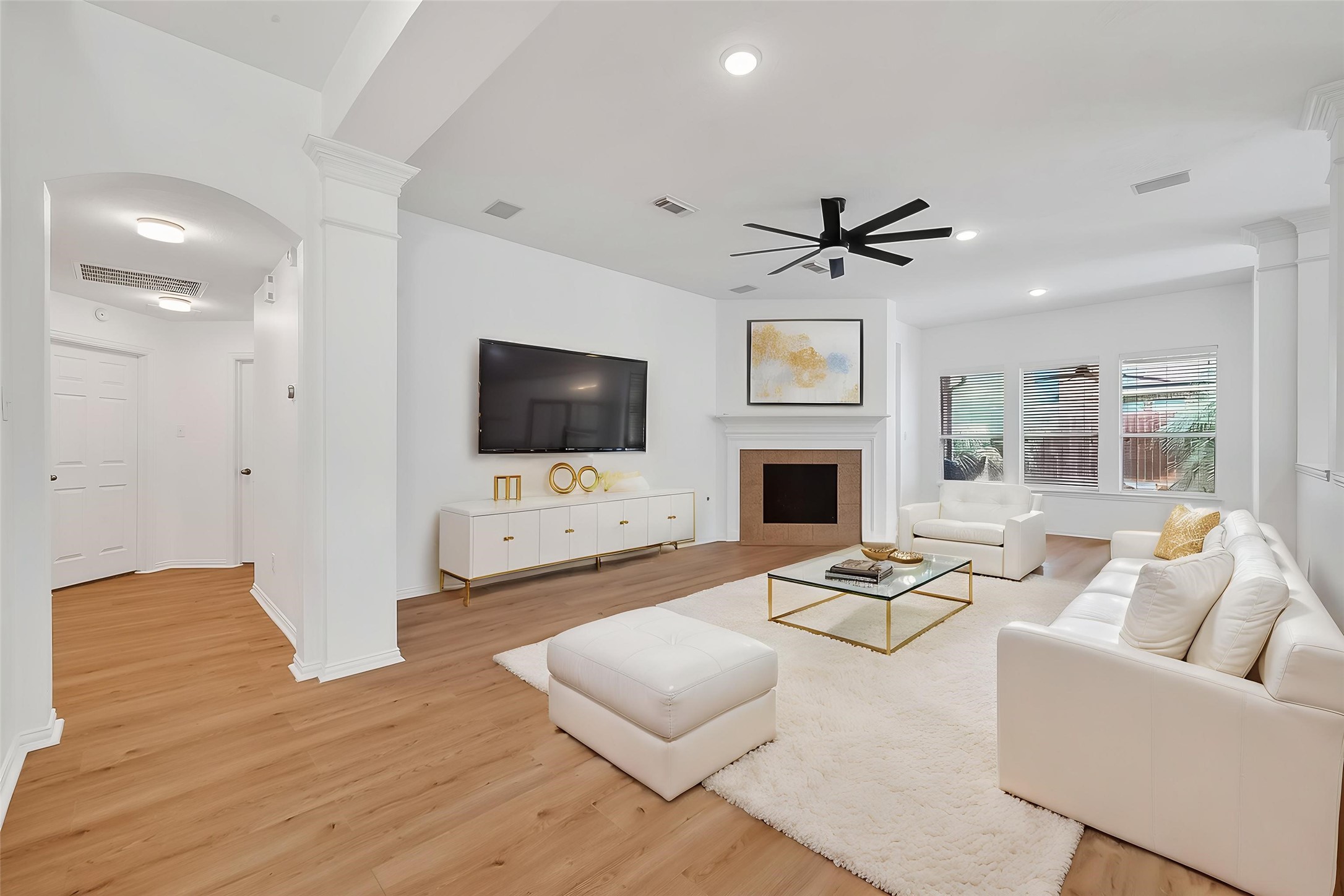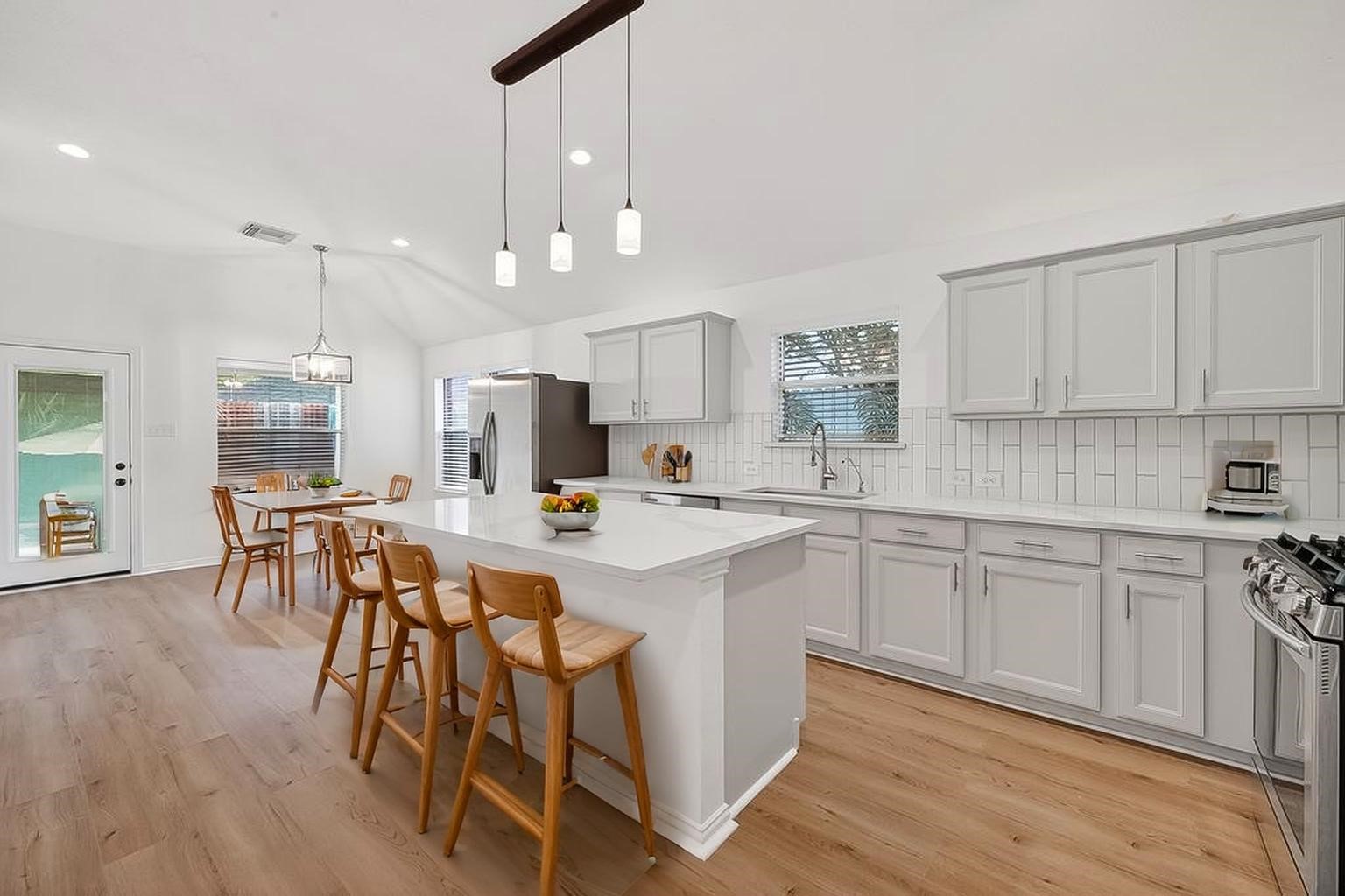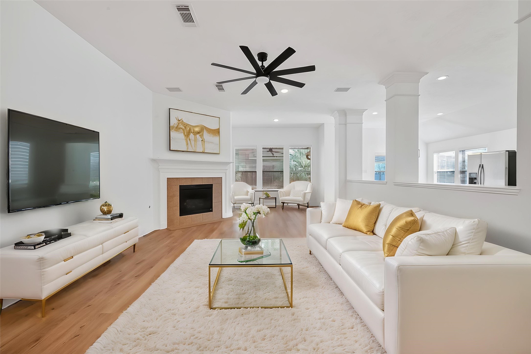 Amazing 1.5 story, 4-bed, 2.5-bath, plus study home situated on a cul-de-sac in the sought-after community of Firethorne, zoned to Katy ISD. Backyard oasis with beautiful CHILLER/HEATER POOL, motorized pergola and wonderfully landscaped and decorated backyard. Home boasts numerous upgrades, including newly installed luxury laminate flooring, remodeled kitchen with quartz countertops, new light fixtures, new carpet in secondary bedrooms & fresh paint throughout. The gorgeous brick exterior is complemented by a sprinkler system, front porch, and lush landscaping. Inside, enjoy large tinted windows, a study, dining room, quartz countertops with an oversized island, stainless steel appliances, and a large upstairs space perfect for a game or media room. The spacious backyard and covered patio provide plenty of space for outdoor activities.
