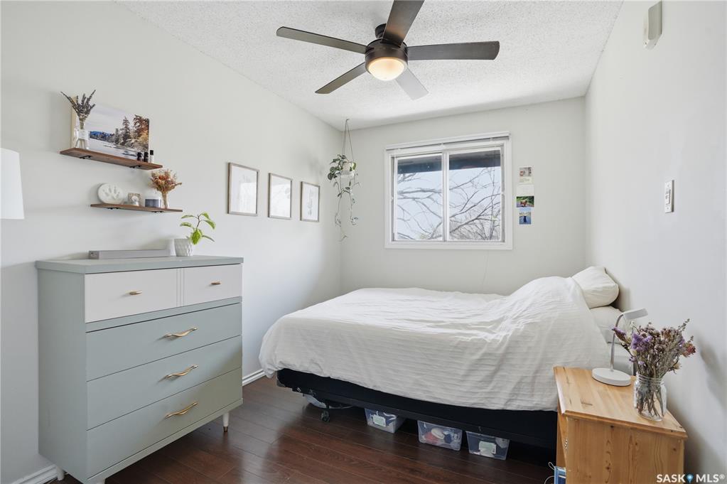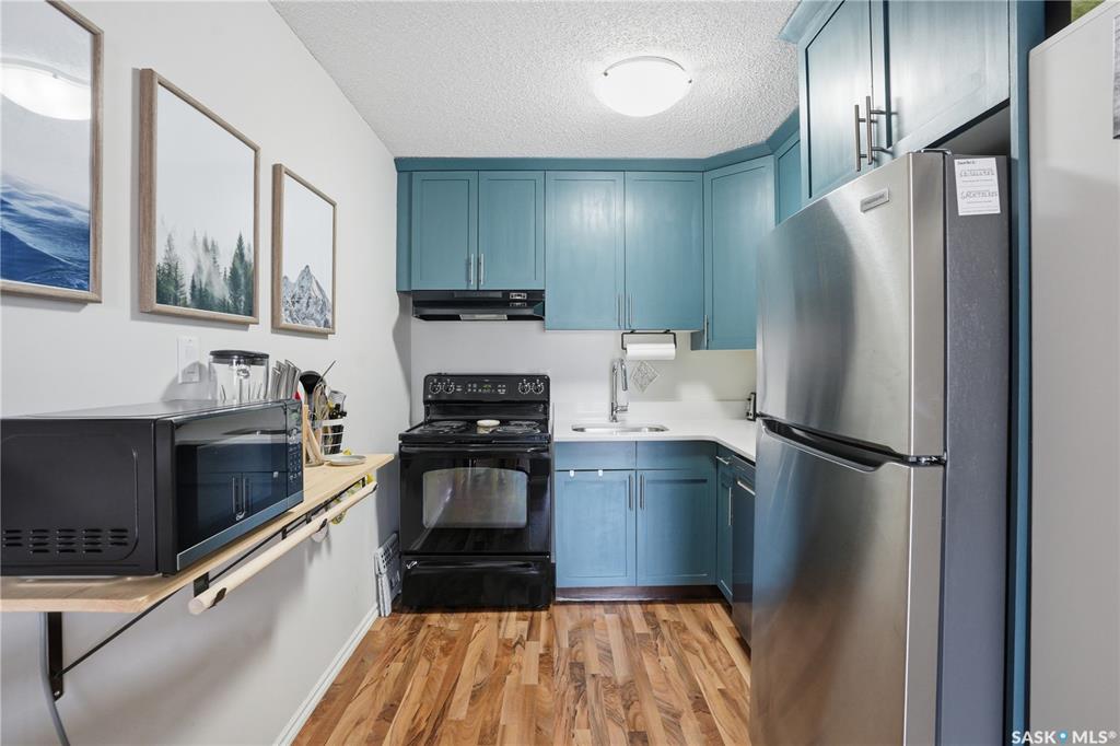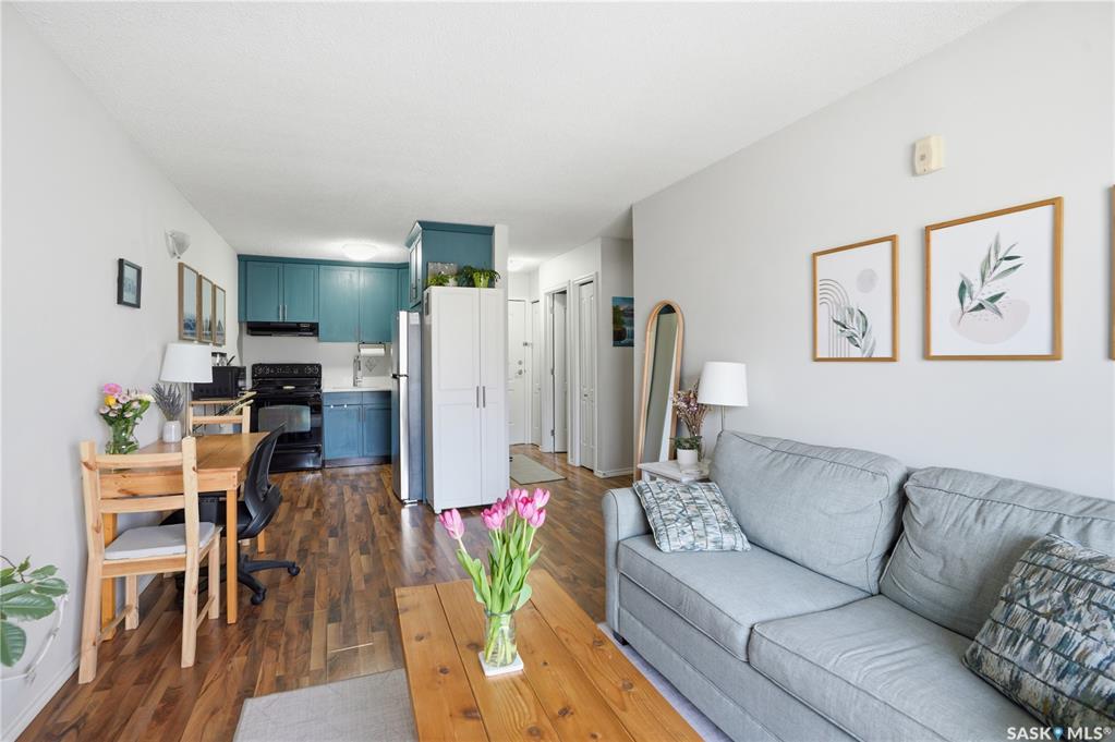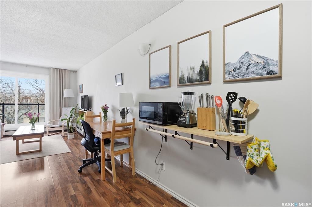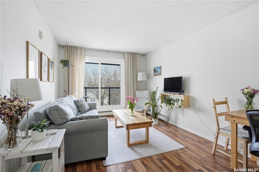 Top floor 1 bedroom condo in highly desirable Nutana. This beauty has been updated to include a stainless steel fridge and built in dishwasher, patio doors and granite countertops with undermount sink. Wall shelving has been thoughtfully placed to make the most of this space. There is an in suite washer/dryer combo but also a free shared laundry option on the 2nd floor. Situated in a fantastic building that is clean and well maintained, boasting a sauna room just a few steps from the unit as well as a secured bike rack space and 1 parking stall out back. The deck overlooks a treelined street and is the perfect place to call home for a professional, university student, snow birds or anyone in between! Close to downtown, 8th st, Broadway, parks, shopping and all amenities! Don't miss your chance to own this amazing little gem.