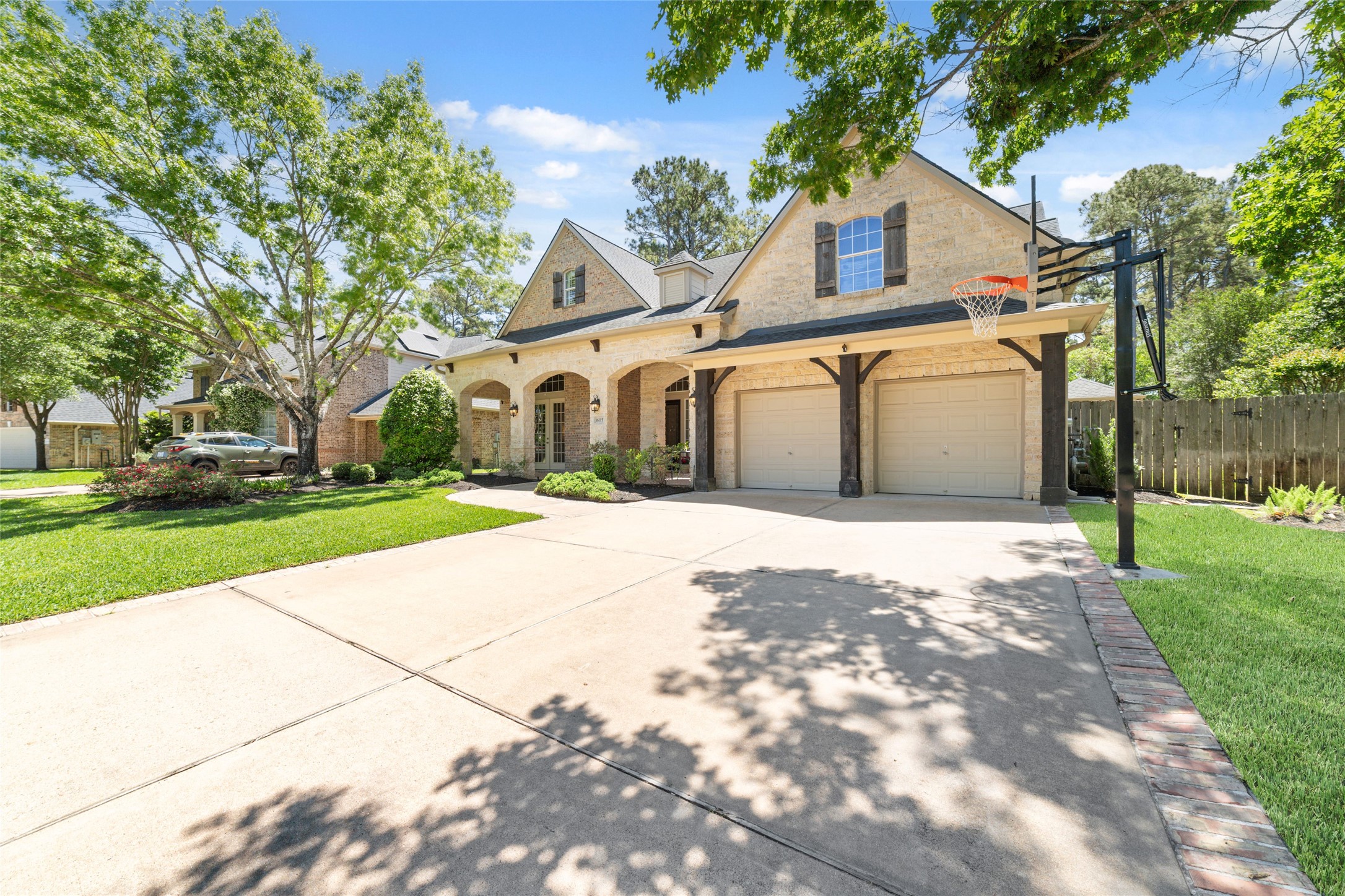 Located in the highly sought-after community of Coles Crossing, this beautiful two-story home offers great curb appeal, a three-car tandem garage and a short walk to the neighborhood’s top-rated elementary school. A grand foyer opens to a dining space and a private home office with its own front porch entry, ideal for working from home. The open living room features abundant natural light and a cozy fireplace, while the kitchen includes a large island, ample cabinetry and generous counter space. The primary suite offers backyard access and a spa-like en suite bath. Upstairs includes a game room and media room for added flexibility. The backyard retreat features a pool, koi pond, and outdoor kitchen under a covered patio with a tongue-and-groove ceiling. A whole-home generator adds peace of mind. Behind the home, a large green space connects to scenic walking trails for added privacy and views. This home combines a prime location with thoughtful features and inviting spaces throughout.