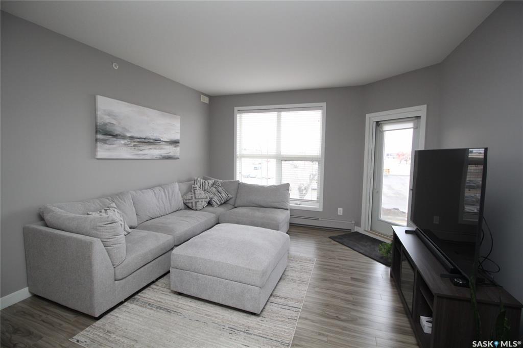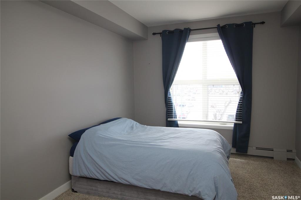 Located in one of Saskatoons most desirable communities. Top floor 2-bedroom 1055 sq ft condo with an unobstructed view to the west. Kitchen has granite countertops, rich espresso cabinets with soft-close drawers, dual undermount sink and stainless steel appliances. Large living room with a garden door that leads from the living room to the west-facing deck. The door has a convenient phantom screen and the deck has a gas barbeque hookup. Spacious primary bedroom with a 3-piece en-suite and a walk-through closet. Laminate flooring throughout most of the condo. The in-suite laundry room is large enough to accommodate additional storage. One underground parking stall and one electrified ground-level parking stall. This complex has a guest suite that may be rented, an amenities room and an exercise room. Additional storage is located in front of the underground parking stall. Several visitor parking stalls are located throughout the complex. Great location. Close to 8th Street shopping and restaurants and easy access to Circle Drive.