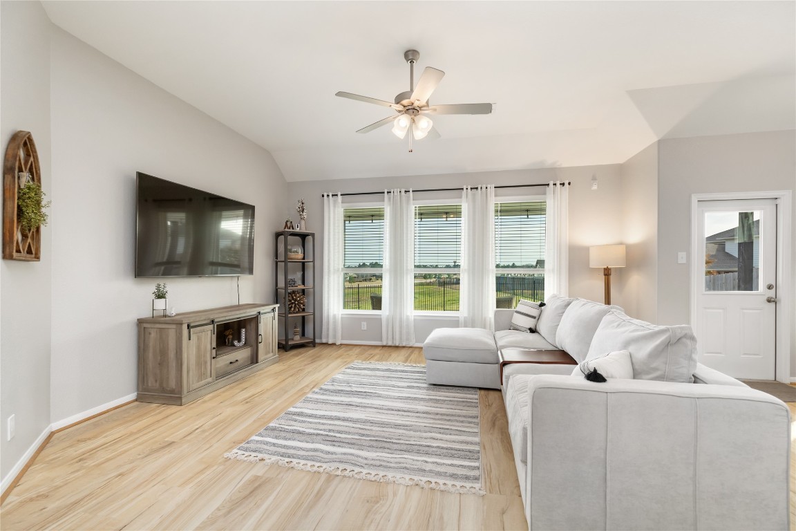 Beautiful 4-bedroom, 3 full bath w/ dedicated home office, game room, & oversized 2.5-car garage located on a premium 60’ large lot w/ no back neighbors. Ideal for multigenerational living, in-law suite, or nursery, w/ two bedrooms & two full bathrooms conveniently located on the first floor.Kitchen features luxury LVP, open shelving, walk-in pantry, new refrigerator, 36-inch 6-burner gas range & custom hood vent. Every bedroom w/ a walk in closet and multiple living spaces.Oversized covered patio & backyard w/ no rear neighbors, ideal for relaxing or entertaining.Additional upgrades include whole house generator, tankless on-demand water heater, water softener w/ RO, alarm system, sprinkler system, & permanent Govee exterior lighting.3 miles from the high school & close to neighborhood amenities including a park w/ shaded playground, splash pad, walking trails, pickleball courts, restrooms, & covered picnic area.