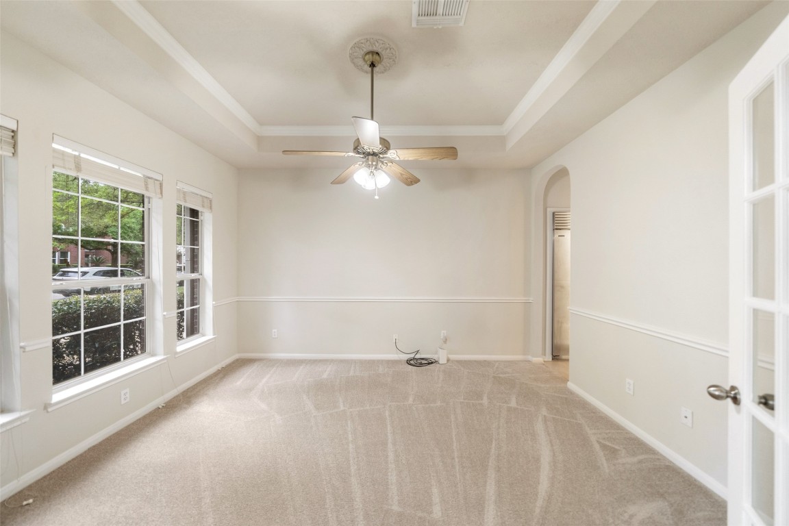 Enjoy golf course community living at its finest in this stunning single-story Windrose home. This spacious 4-bedroom, 3-bath home features a brick exterior, high ceilings, wood flooring, and recent tile/carpet throughout. A private study with French doors and a formal dining room add both function and elegance, while the open family room with a corner fireplace creates a warm, inviting space. The chef's kitchen rivals those found in million-dollar homes, fully equipped with Sub-Zero 48" refrigerator, 36" freezer, Wolf 30" gas cooktop with warming rack, Wolf convection stem and convection ovens, Wolf warming drawer, Asko dishwasher and Scotsman nugget ice maker. The spa-like primary suite offers dual sinks, jetted tub and beautifully updated shower. Step outside to a serene backyard with an extended patio and an impressive outdoor kitchen featuring a Wolf grill, Wolf under-counter refrigerator and Wolf warming drawer-perfect for entertaining. Windrose offers many amenities, Klein ISD.